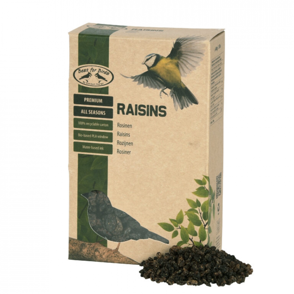 Toto kŕmenie pre vtáky obsahuje hrozienka, ktoré sú zdravou a vítanou pochúťkou radu vtáčikov. Sú bohaté na cukor, a tak poskytnú výživu nielen na jar, kedy sa spamätávajú zo zimy a chystajú na novú generáciu, ale aj cez leto a na jeseň, pri vykrmovaniu svojich potomkov a chystanie sa na zimu, a samozrejme potom v zime, kedy je prikrmovanie vonkajšieho vtáctva asi vôbec najdôležitejšie.