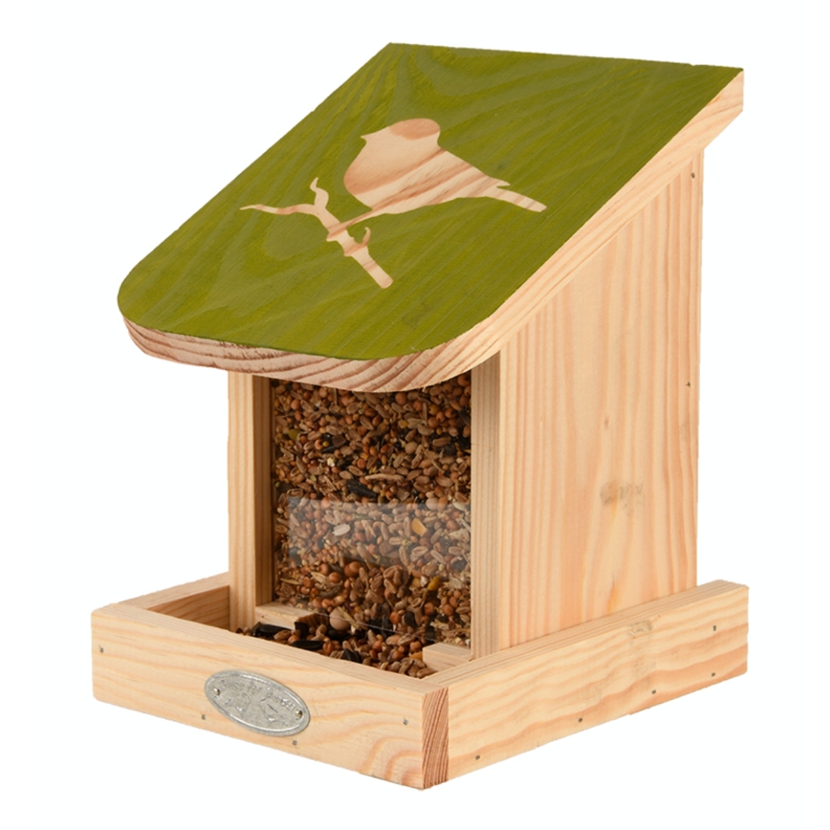 Kŕmidlo so samovoľným doplňovaním zrna. (Doplňovanie) potravy pre vtáčiky je ľahké, stačí zdvihnúť strechu. Zvýšený okraj funguje ako bidielko a tvorí samostatnú kŕmnu tácku, ktorá pomáha znižovať riziko šírenia chorôb medzi vtákmi.