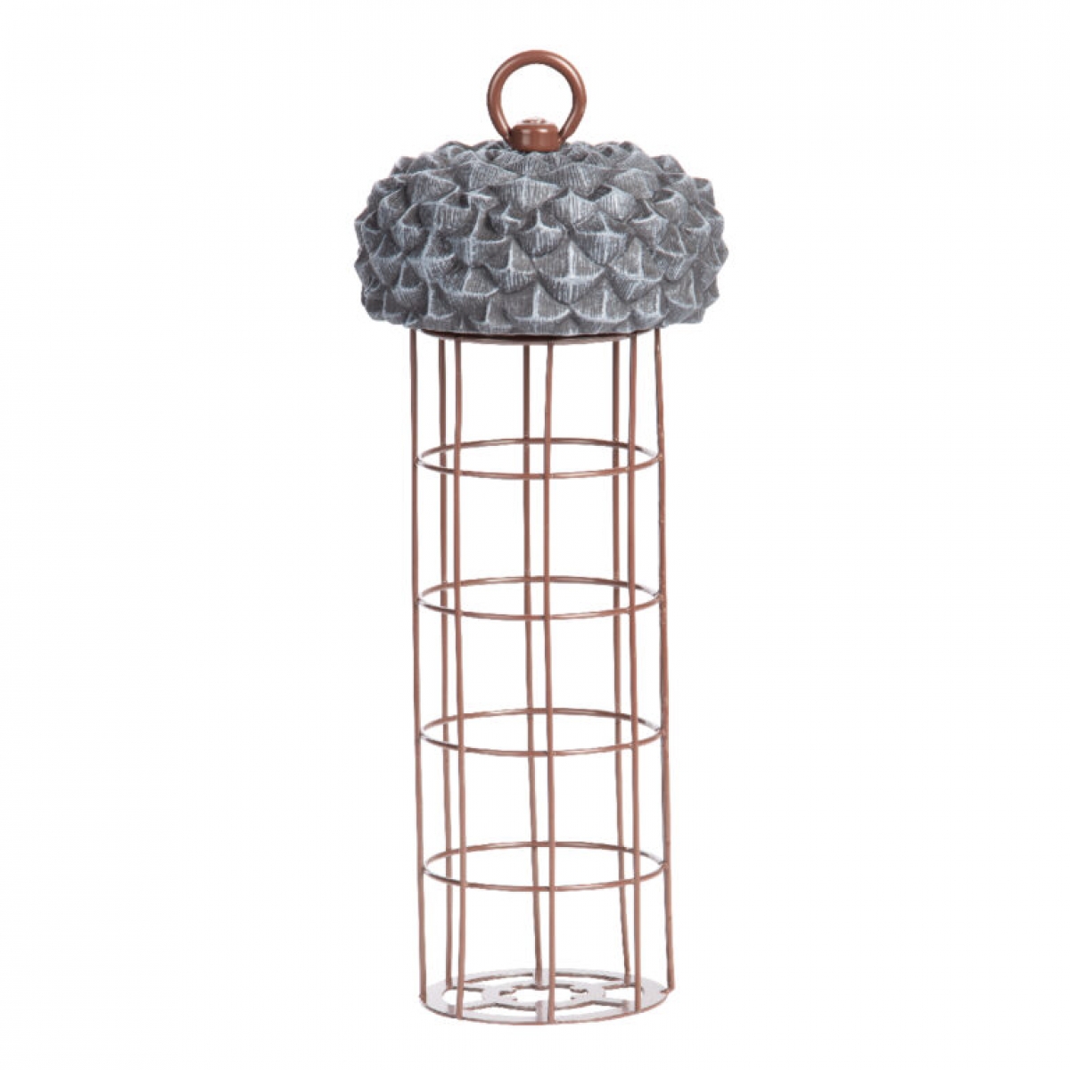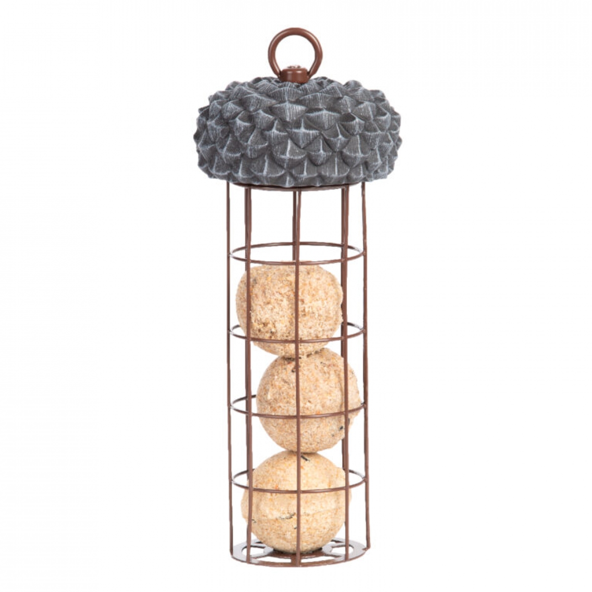 Toto štýlové kŕmidlo na lojové gule môžete zavesiť na akýkoľvek strom alebo trám na záhrade. Vďaka otvorenej konštrukcii sa vtáčiky ku kŕmidlu ľahko dostanú zo všetkých strán.