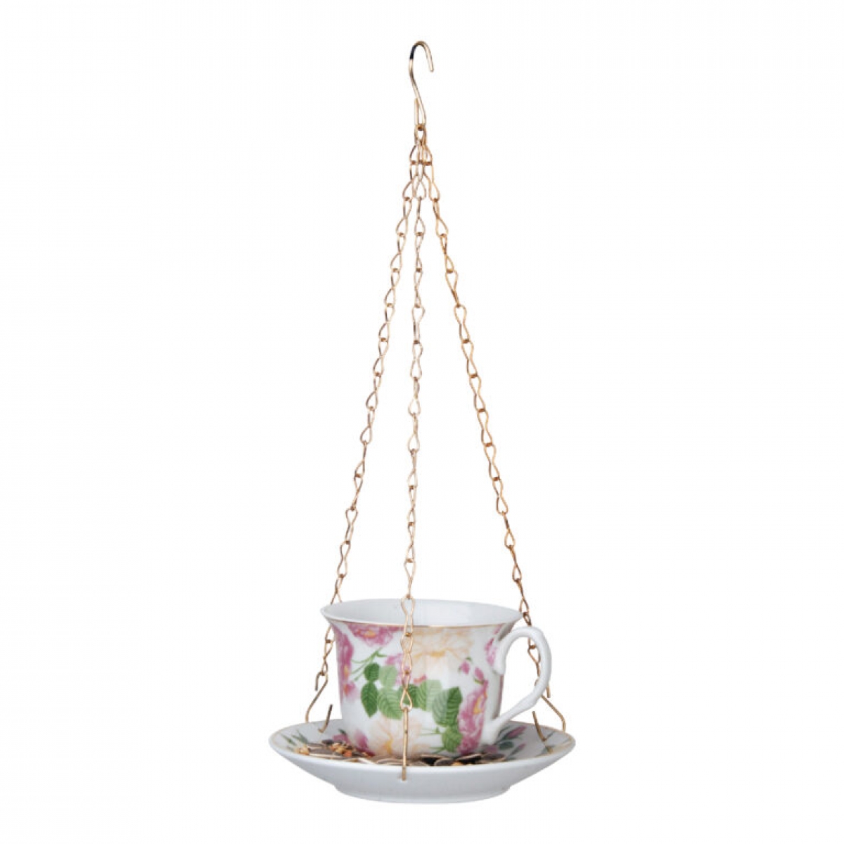 Kŕmidlo na zavesenie v podobe štýlového šálke, ktorý možno použiť aj ako pítko