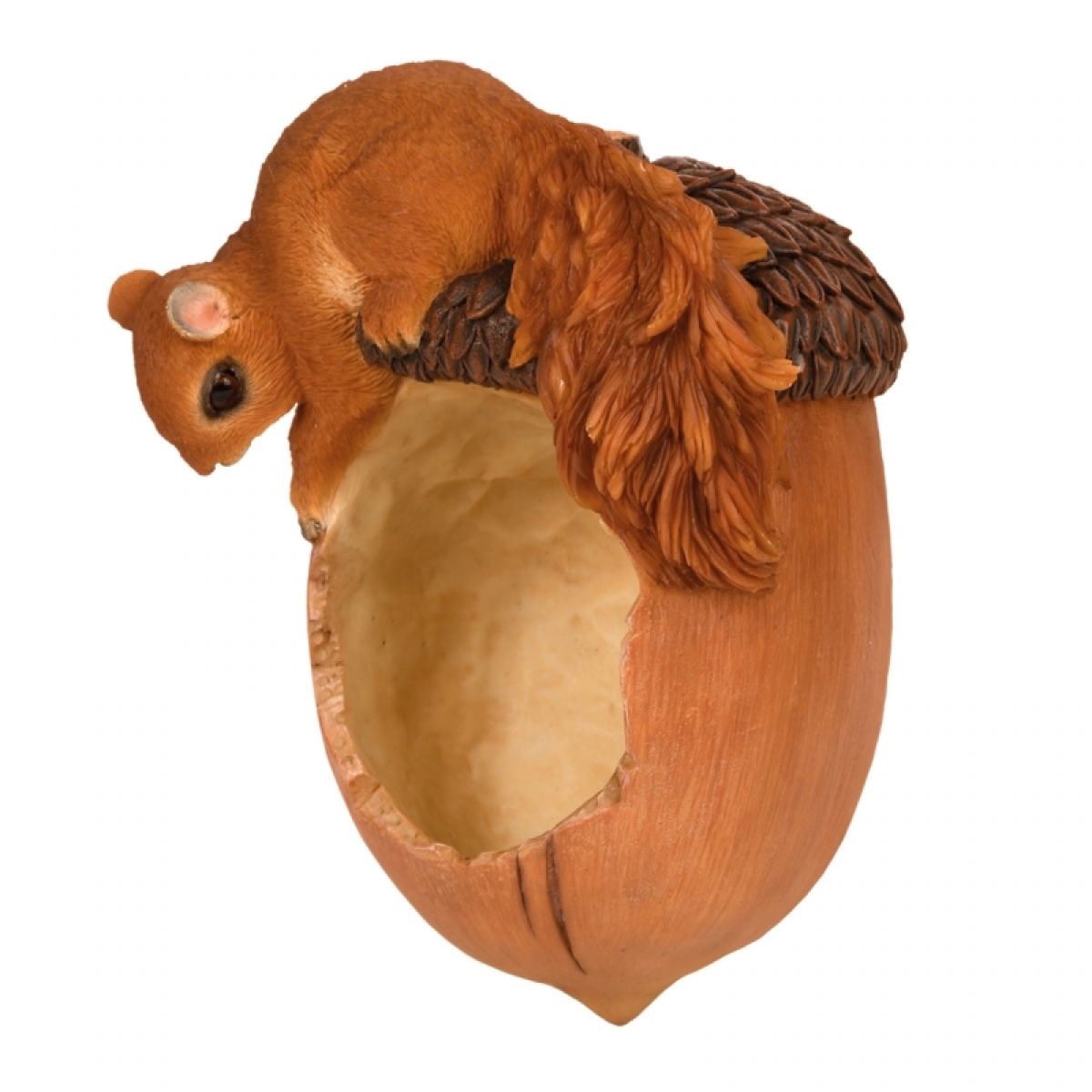 Kŕmidlo pre veveričky alebo vtáčiky v podobe veveričky a vydlabaného žaluďa