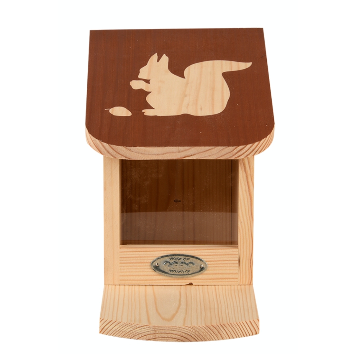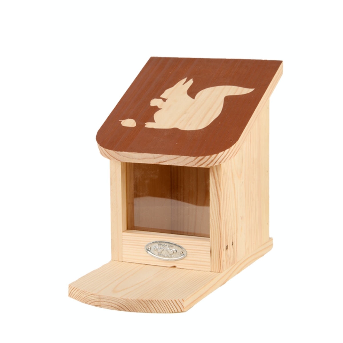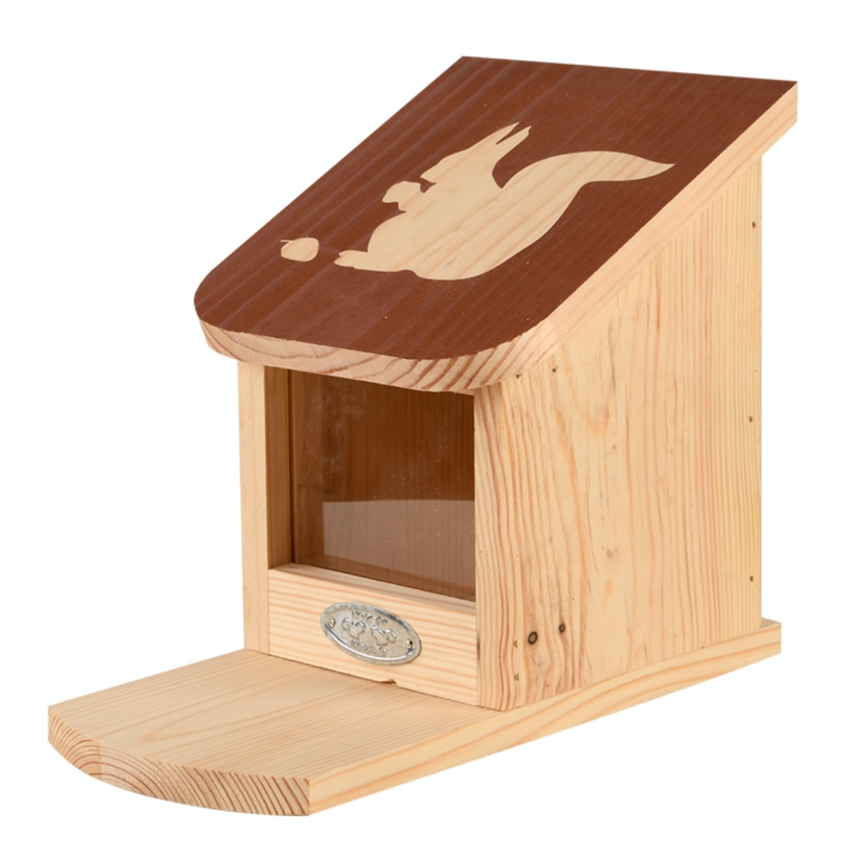 Kŕmidlo pre veveričky je vyrobené z borovicového dreva s certifikáciou FSC® a opatrené moridlom na vodnej báze. Pomocou otváracej striešky môžete do zásobníka nasypať kŕmenie pre veveričky v podobe orieškov, semienok, kukurice atď. Laskominy, ktoré sú vidieť cez čelné plexi sklo nalákajú veveričky.