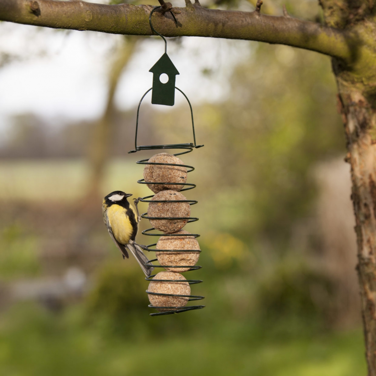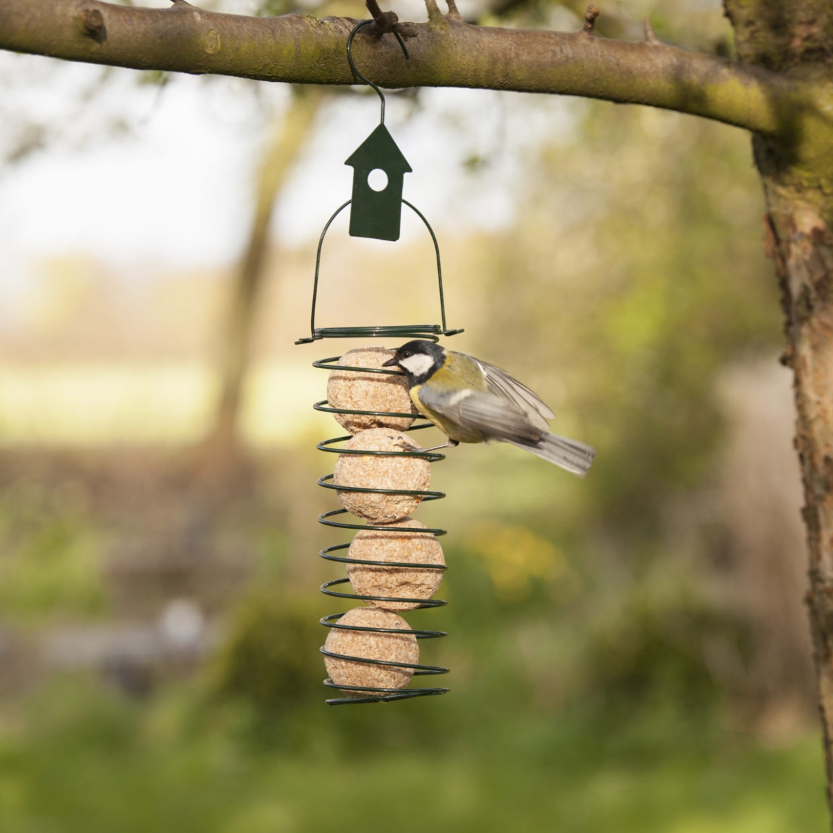 Kŕmidlo pre vtáky na lojové kŕmne gule s plniacou pružinou.