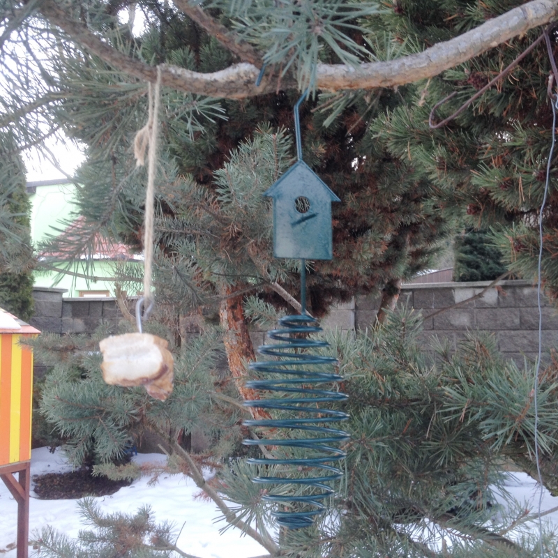 Použitie: Položte lojové guličku pre vtáky na stôl, uchopte pevne v miestach na konci pružiny, primeranou silou roztiahnite závit, namáčkněte na lojové koli a povoľte. Stiahnutím pružiny sa krmivo dostane dovnútra kŕmidlá a môžete už len zavesiť na strom.