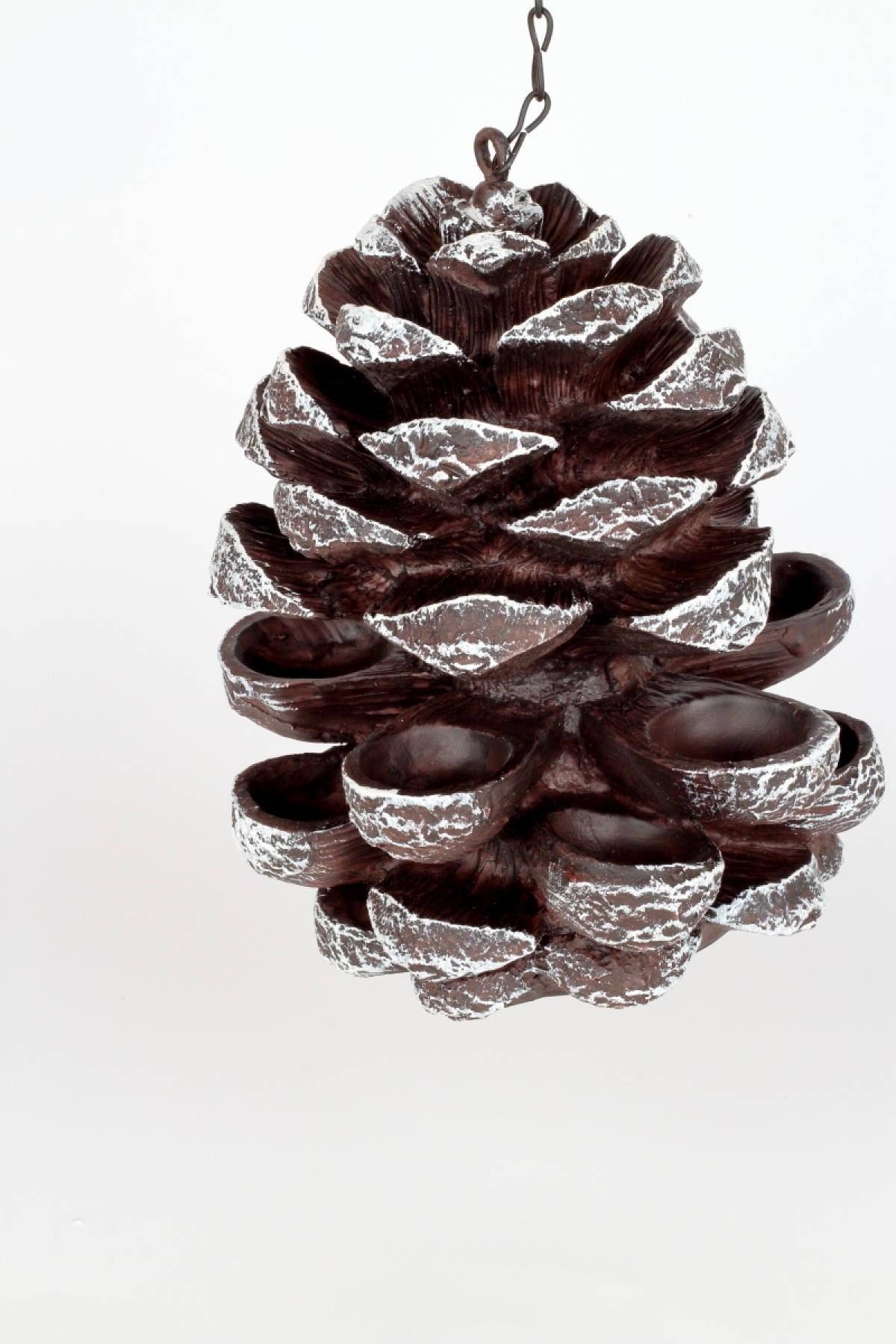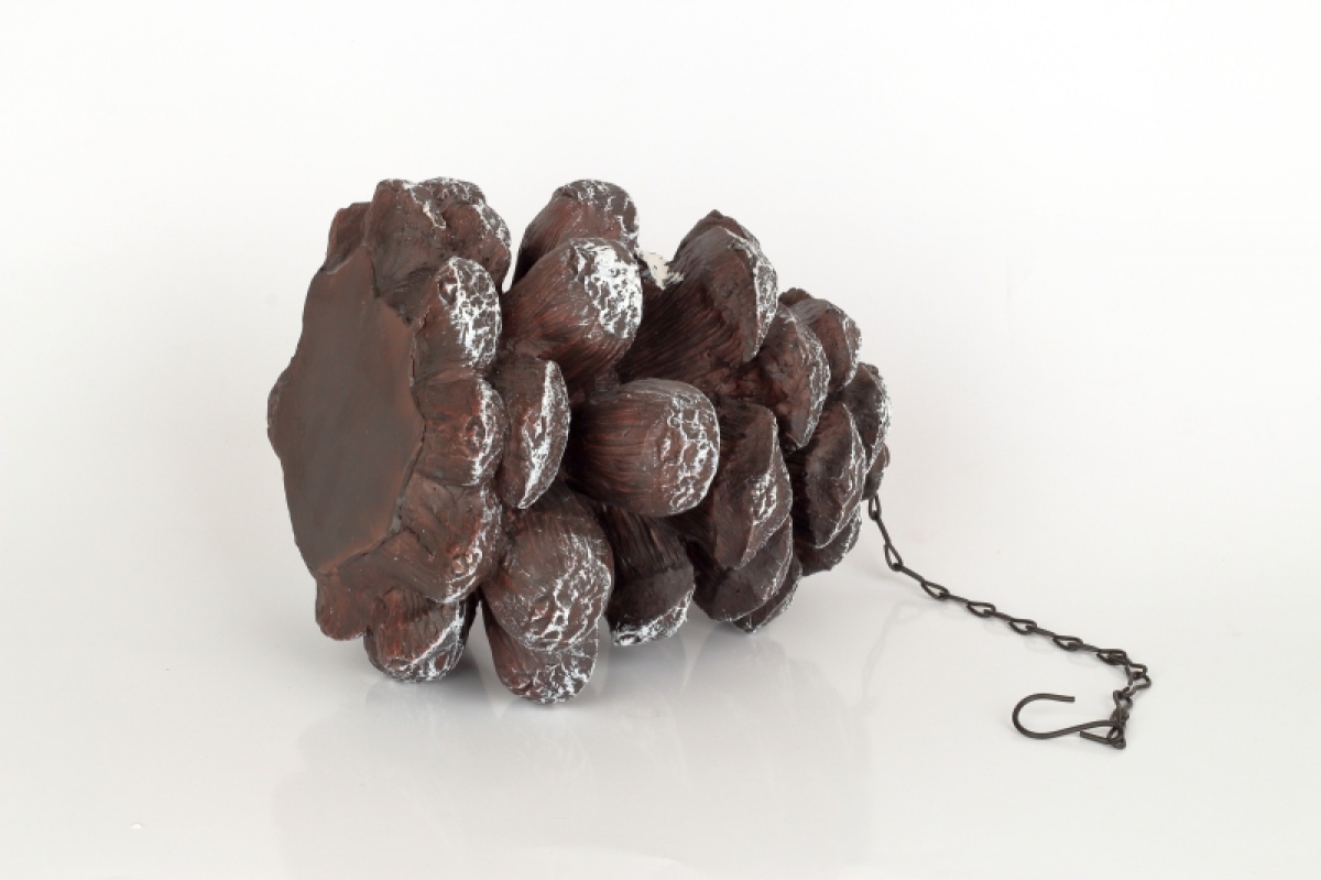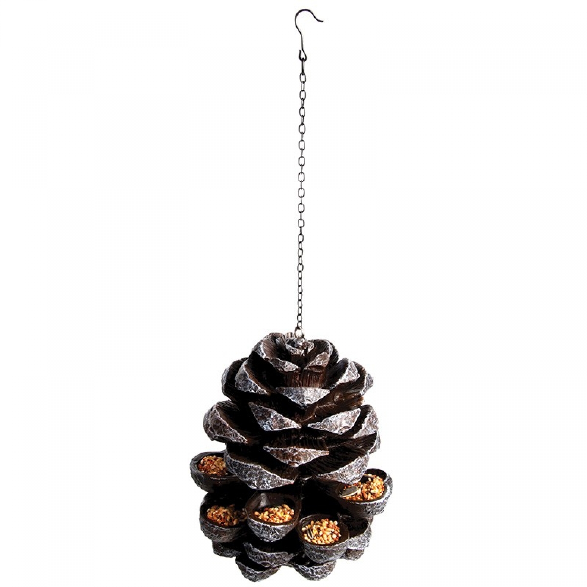 Kŕmidlo pre vtákov v tvare šišky má kovový retiazka na zavesenie na strom, trám záhradného altánku alebo domu.