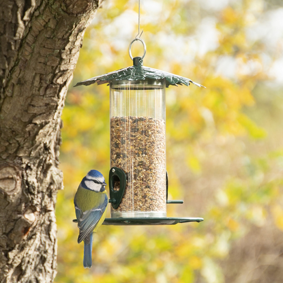 Kŕmidlo pre vtáky so zásobníkom na semená celokrytý, závesný