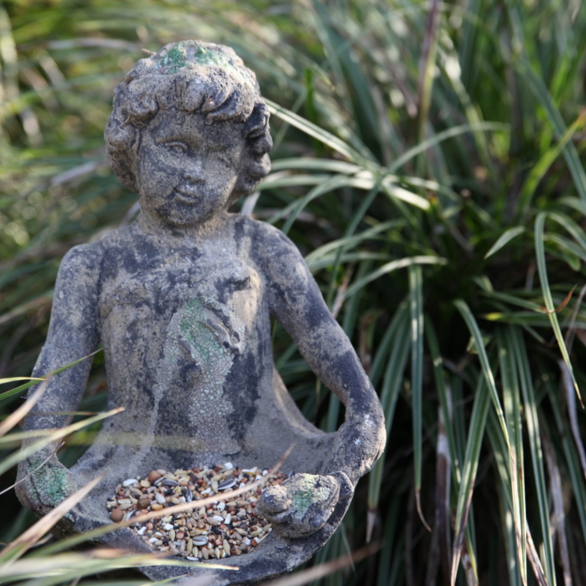 Kŕmidlo pre vtáky z terakoty s prírodnou mechovů patinou