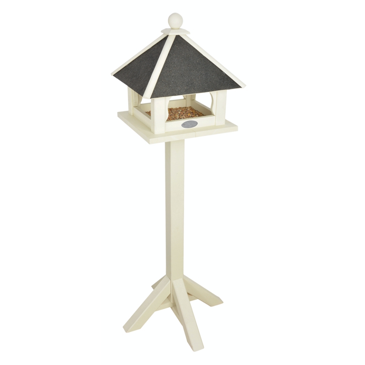 Krmítko na nohe je vyrobené z kvalitného borovicového dreva s krémovou povrchovou úpravou. Strieška je potiahnutá krytinou zo živice, ktorá pomáha zaistiť, aby krmivo pre vtáky zostalo v suchu.