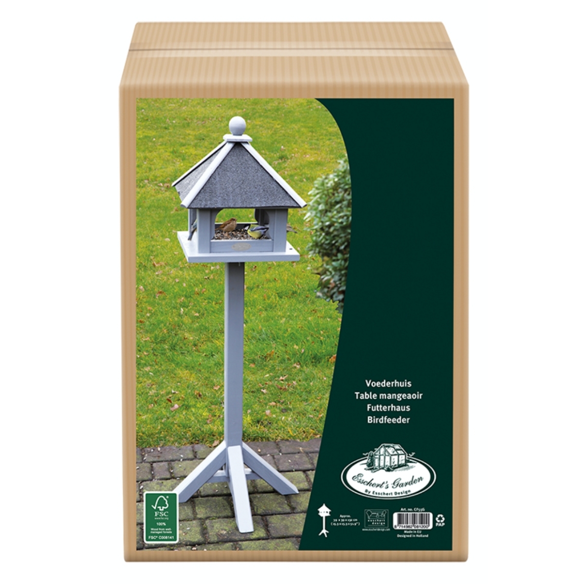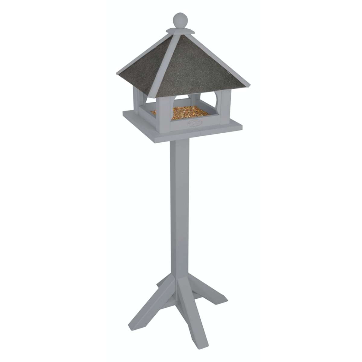Krmítko na nohe má otvorenú konštrukciu a umožňuje tak štvornohým operencom voľný prílet zo všetkých smerov. Je vyrobené z kvalitného borovicového dreva v šedom farebnom prevedení. Štvornohá základňa zaisťuje krmítku stabilitu na akomkoľvek povrchu.