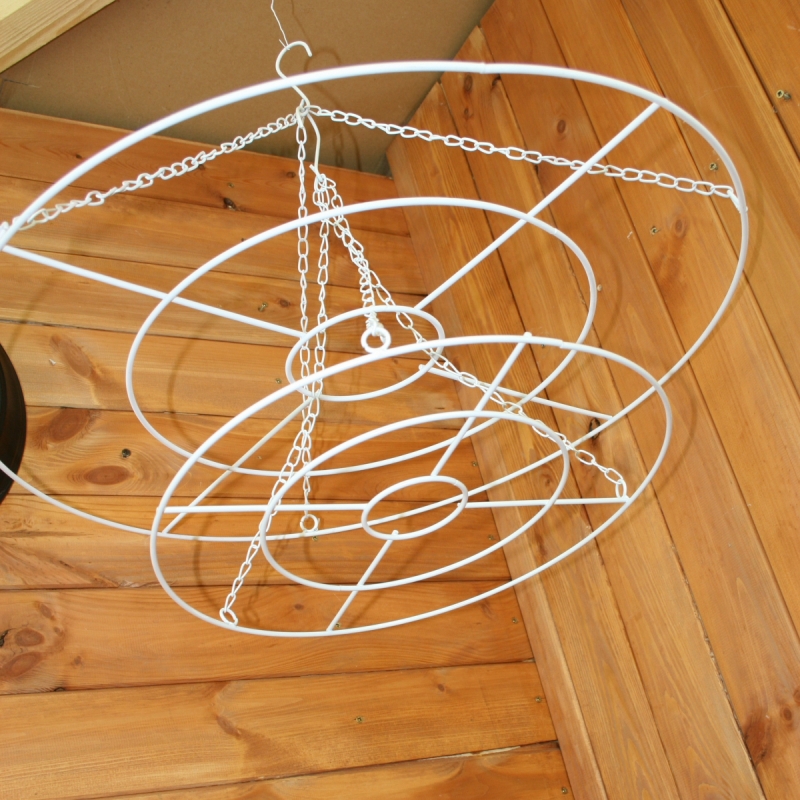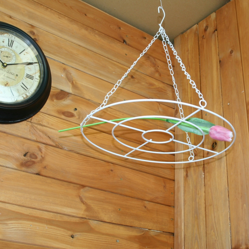 Kovová sušička byliniek má kovové reťaze s háčikom pre jednoduché zavesenie. Biela farba je veľmi elegantná a pôsobí veľmi ľahko a vzdušne.