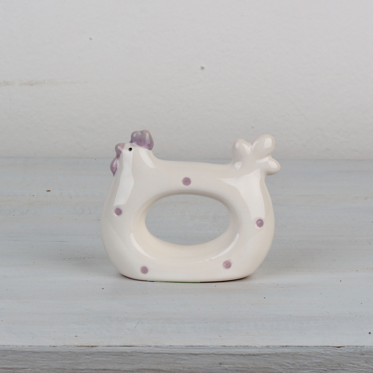 Krúžok na obrúsky sliepočka biela 8,5x7cm