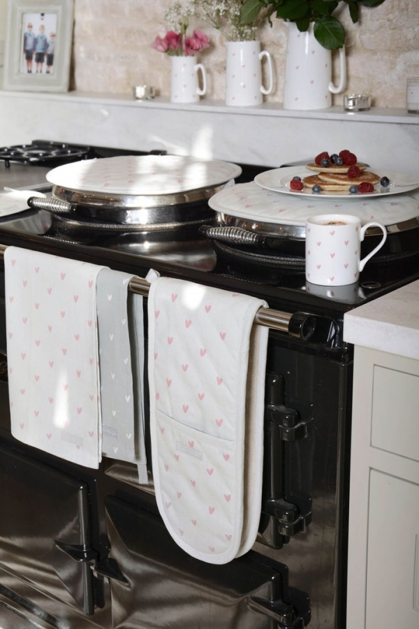 Kuchynská chňapka v dvojitom prevedení s potlačou srdiečok
