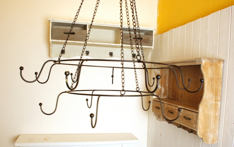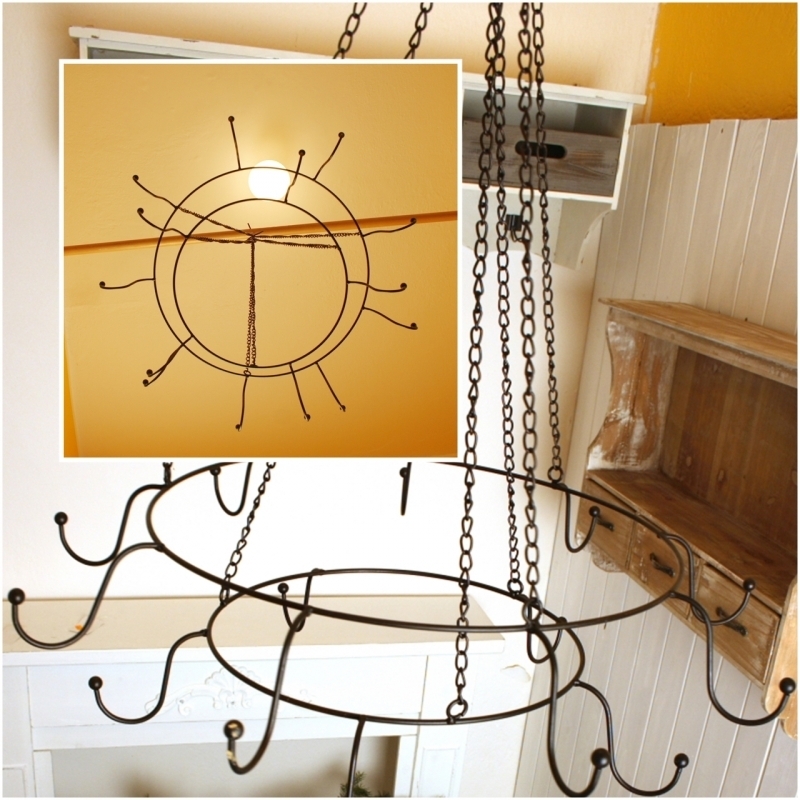 Kuchynský závesný kruh/ sušička s háčikmi 30cm môže slúžiť nad kuchynským ostrovčekom na zavesenie hrnčekov alebo kuchynského náčinia. Nebojte sa zavesiť na háčiky čokoľvek, čo vás napadne. Práve tak vykúzlite jedinečnú atmosféru babičkinej kuchyne.
