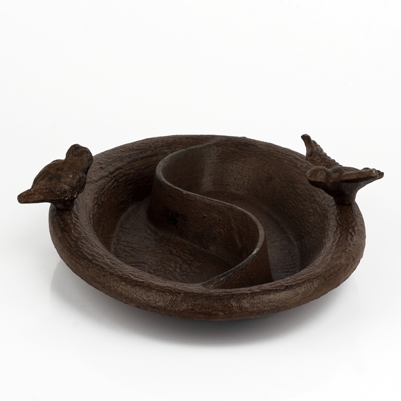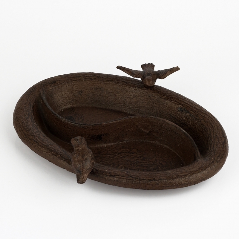 Jedná sa o štýlovú dekoráciu. Liatinový výrobok má rozmer 29 x 20 cm, oválny tvar a zdobia ho dva vtáčiky vypínajúci sa do výšky 7,5 cm.
