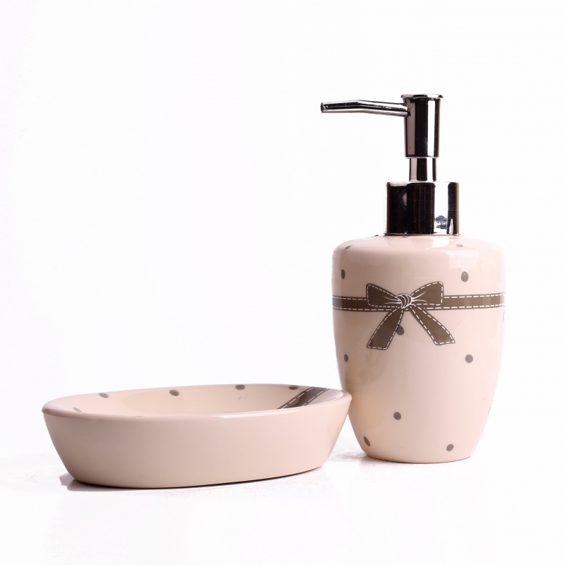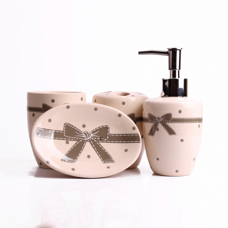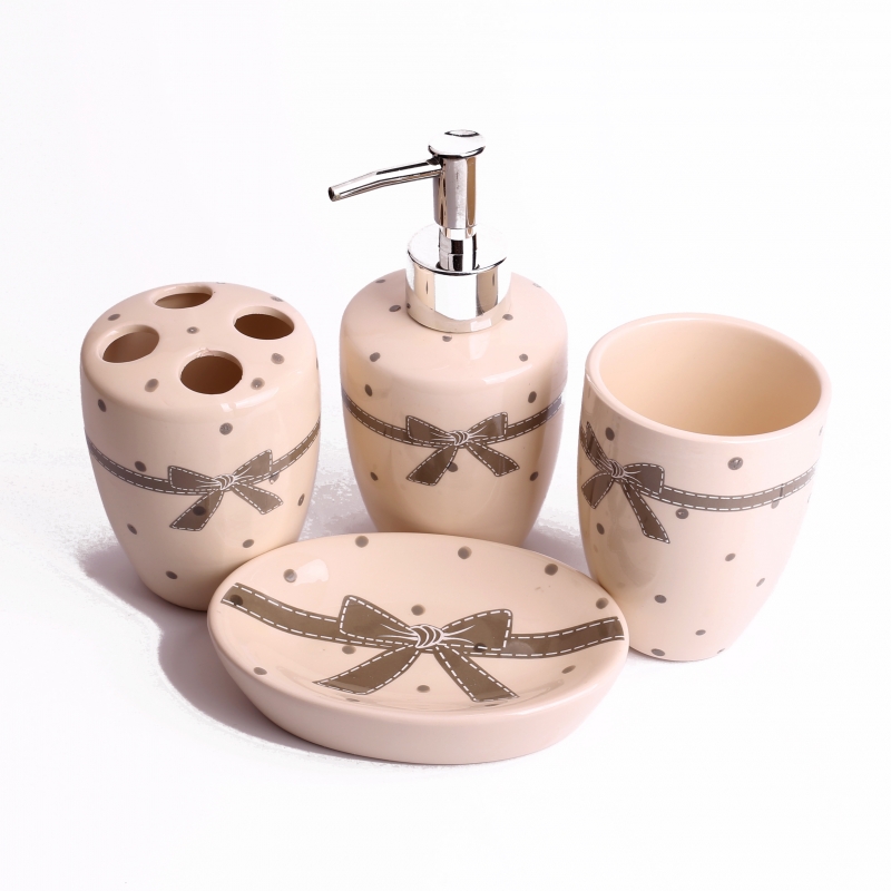 Keramická sada v neutrálnych farbách poteší milovníkov bodiek. Tie zdobia každý jednotlivý kus a navyše je sada doplnená o motív veľkej mašle.