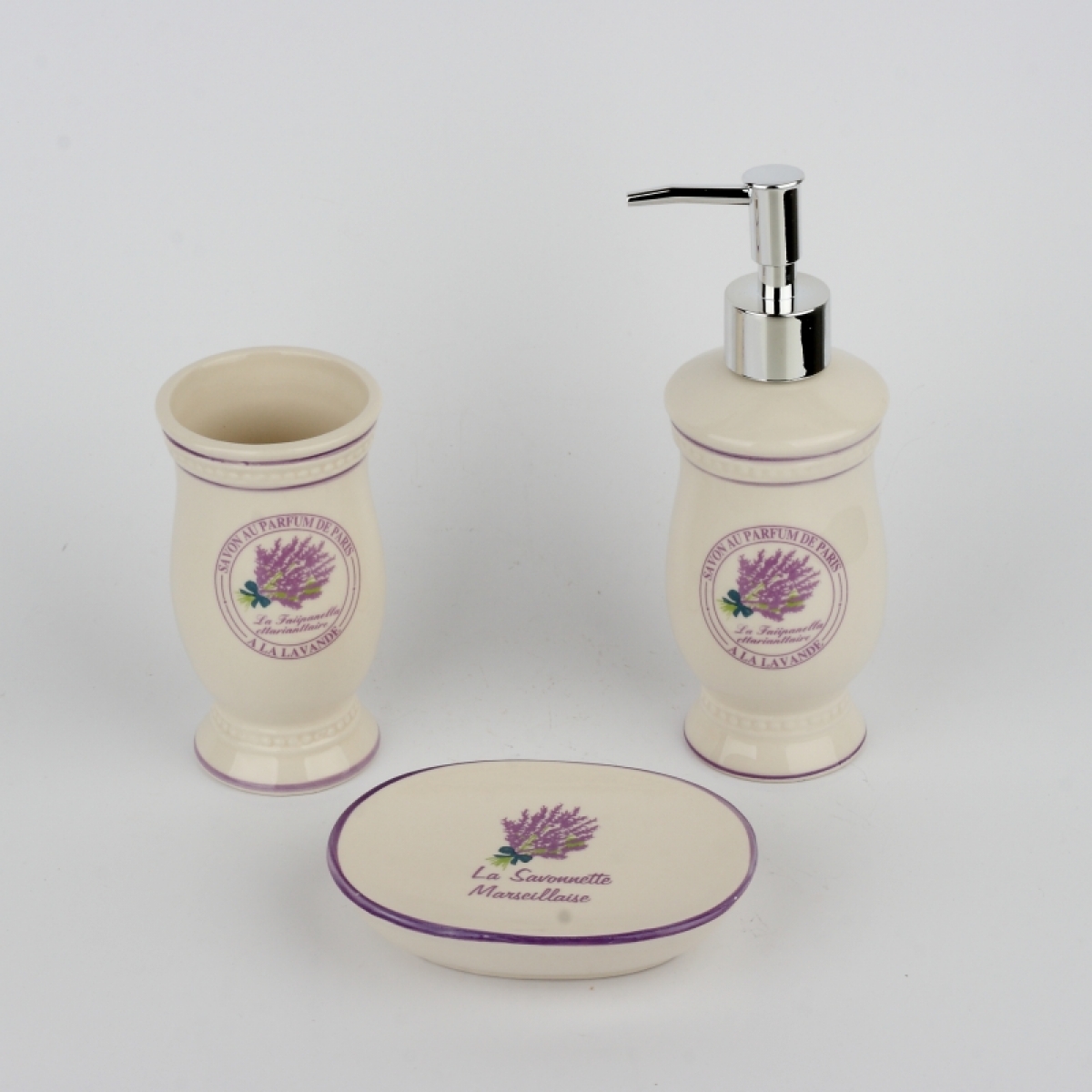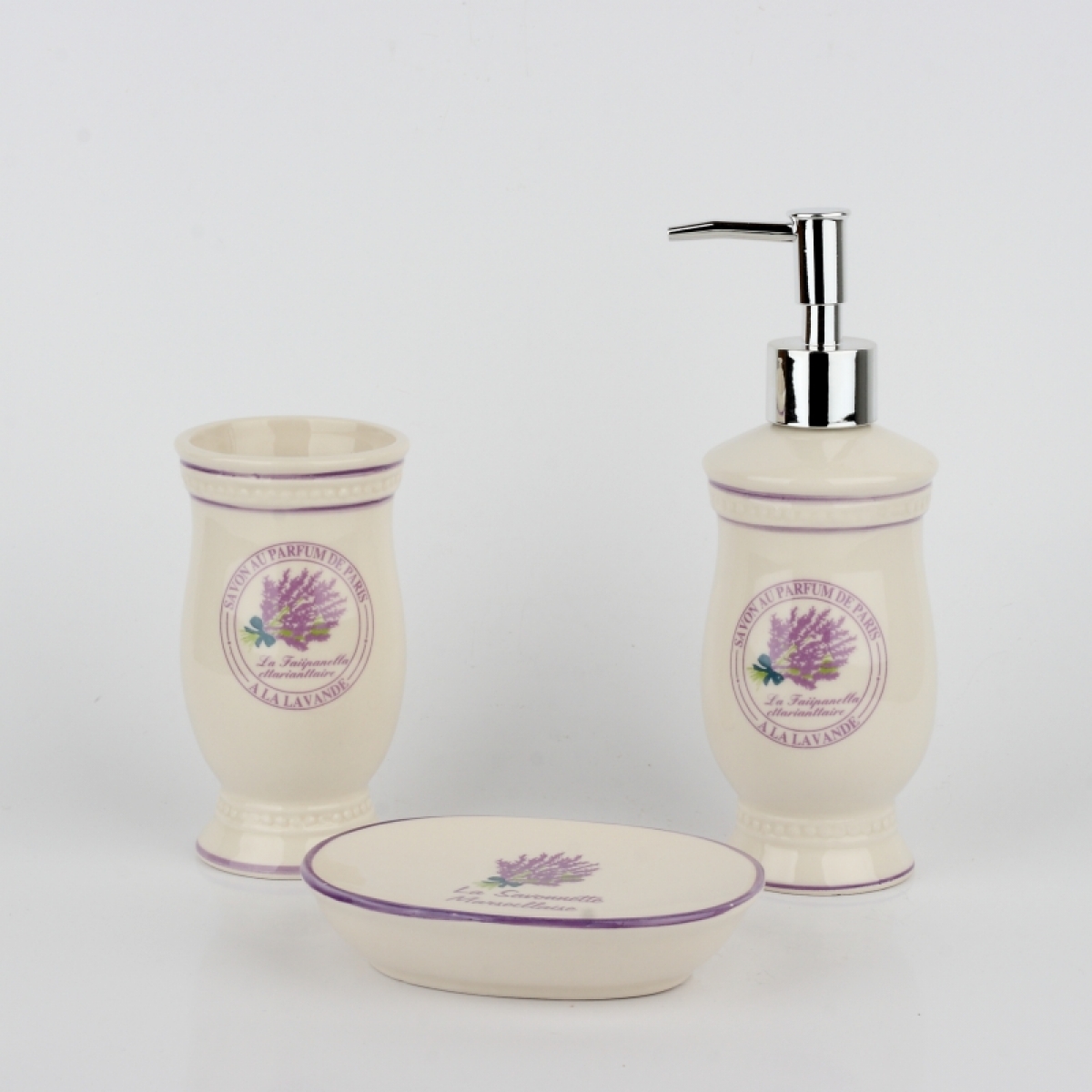 Kúpeľňová sada levanduľa (sada 3ks)8x7x20cm do vidiecky zariadené kúpeľne.