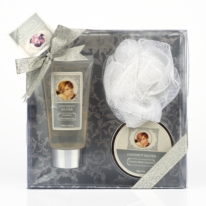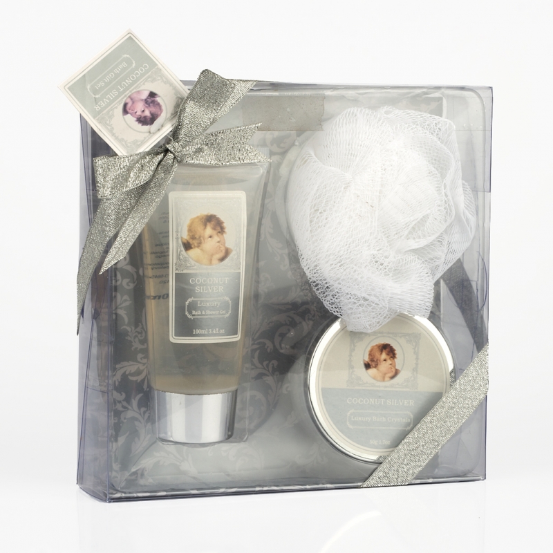 Kúpeľnový set, výživný krém, telové maslo a hubka