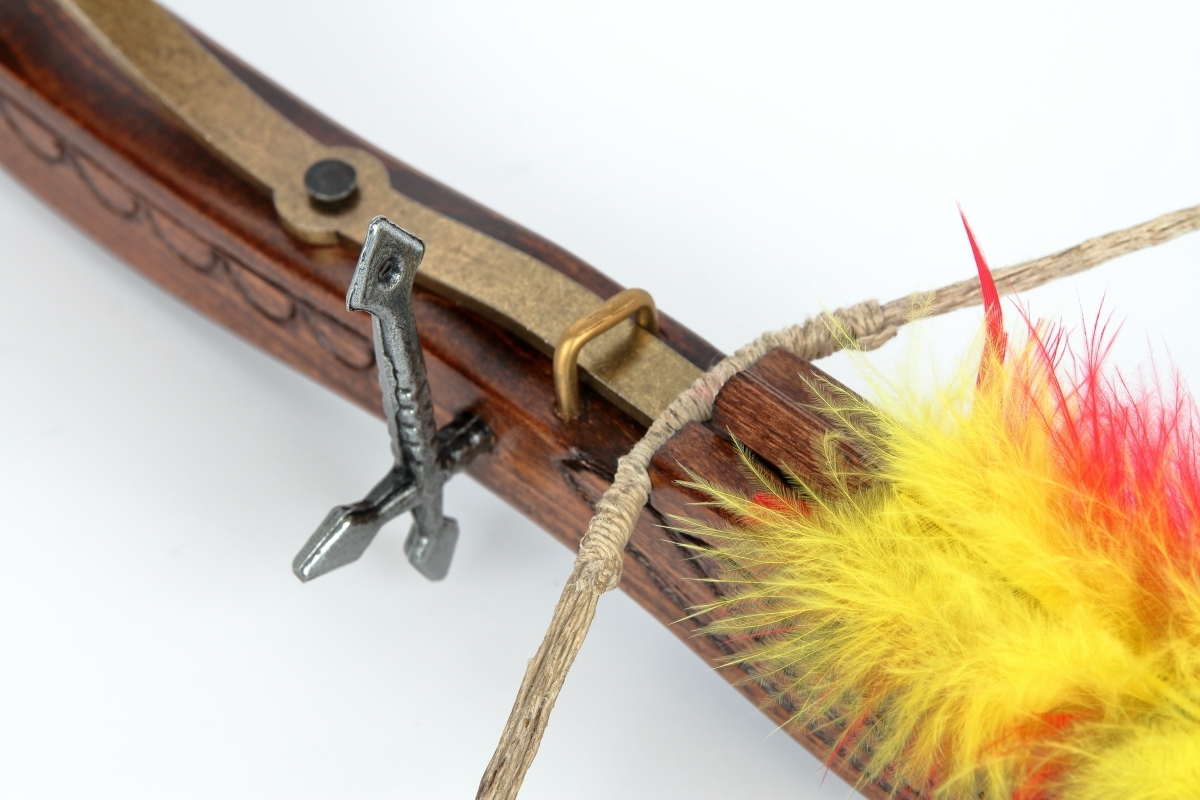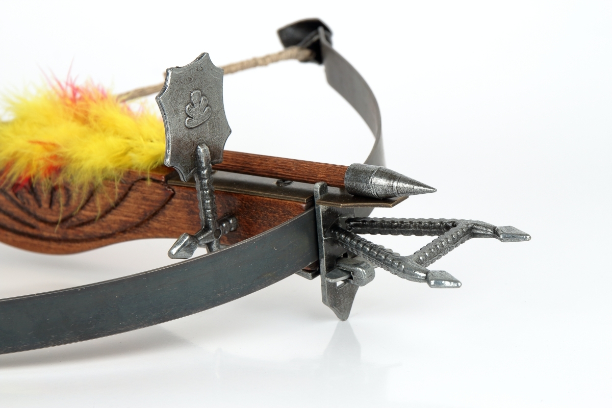 Kuša je vyrobená z dreva s ručne vyrobenými rezbami, šíp s kovovým hrotom a pierkami, oceľový oblúk, mechanizmus a komponenty z lešteného kovu.