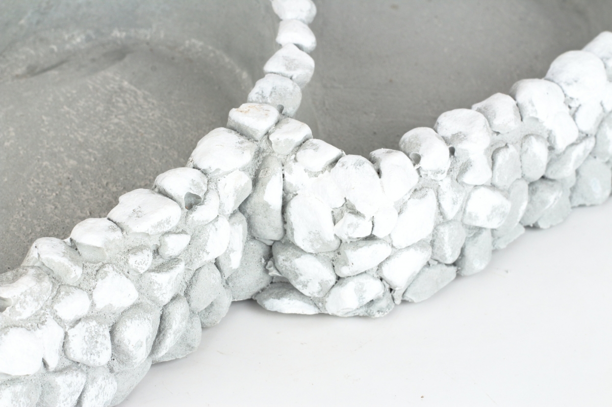 Kvetináč, v tvare dvoch sŕdc, ktorého vonkajšie strany sú zdobené štruktúrou podobnou mozaike, sa svojím rustikálnym vzhľadom bude skvele hodiť na terasu, či záhradu. Je vyrobený z betónu a jeho krásna štruktúra je na ňom priznaná. Vďaka tomuto materiálu tiež dokáže odolávať nepriazni počasia a po čase získa krásnu patinu.