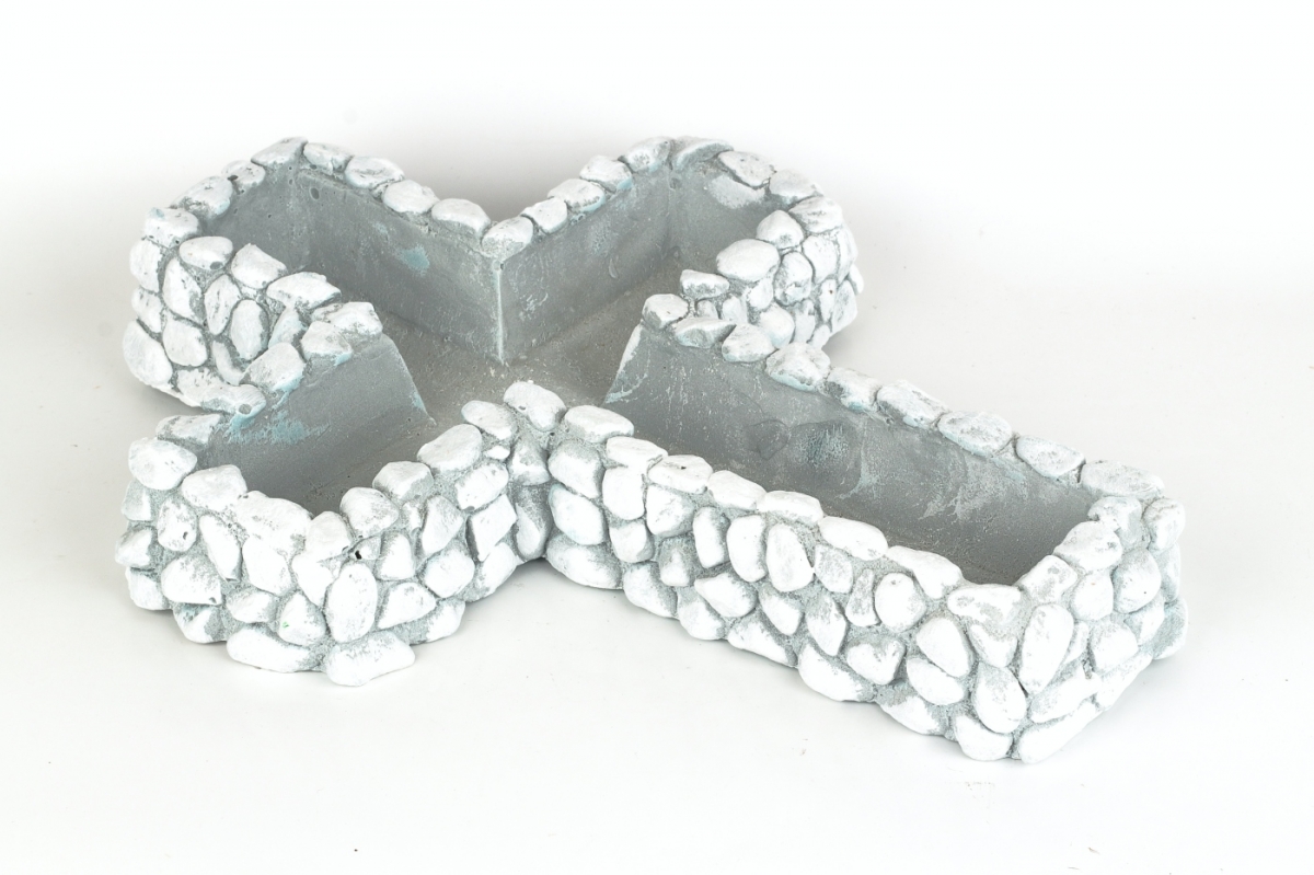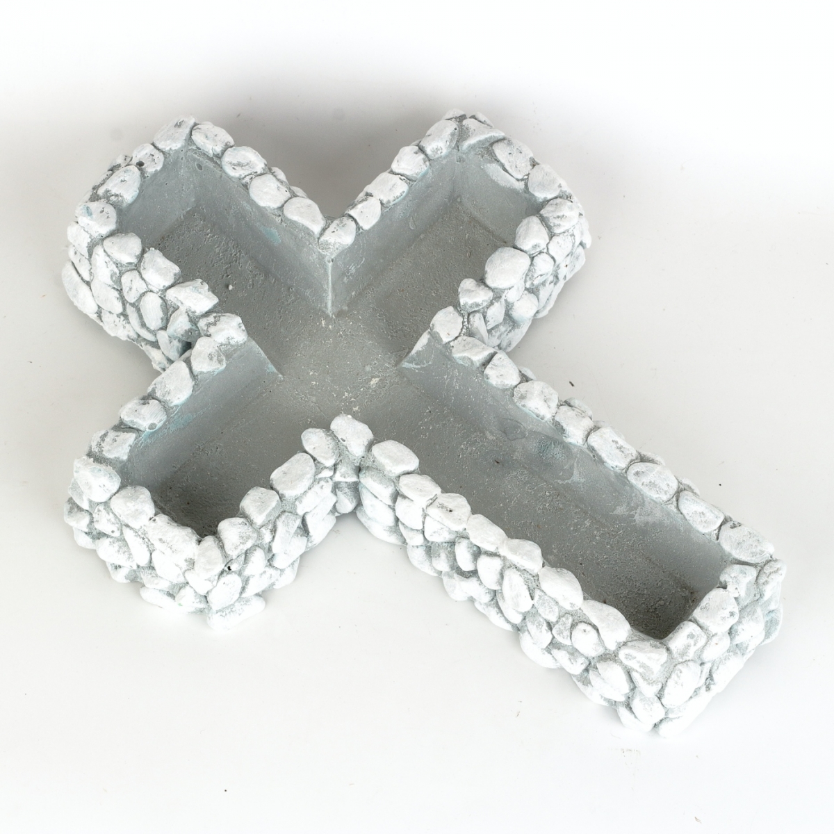 Kvetináč v tvare kríža, ktorého vonkajšie strany sú zdobené štruktúrou podobnou mozaike, sa svojím tvarom a rustikálnym vzhľadom bude hodiť na cintoríny a pietne miesta. Je vyrobený z betónu a vďaka tomuto materiálu tiež dokáže odolávať nepriazni počasia a po čase naviac získa krásnu patinu.
