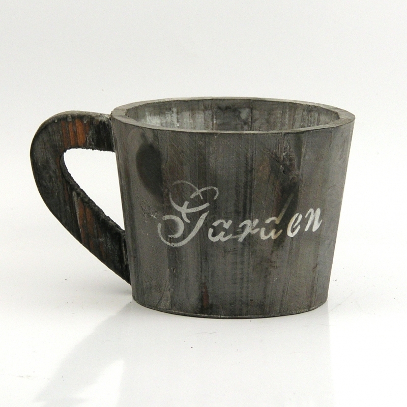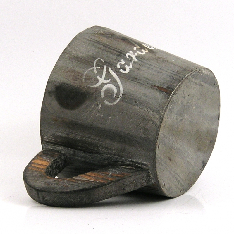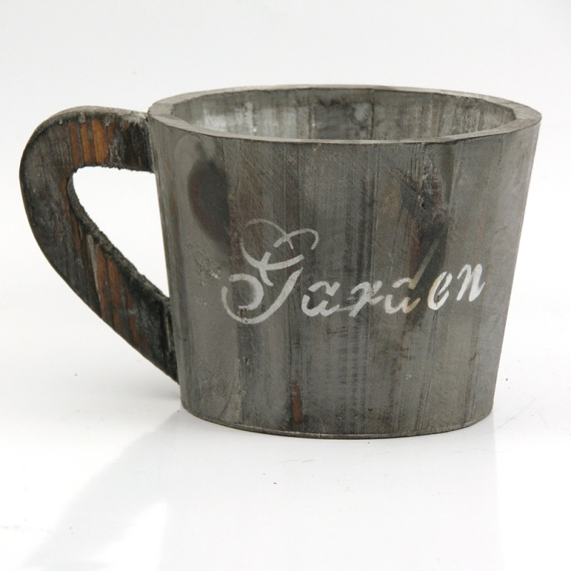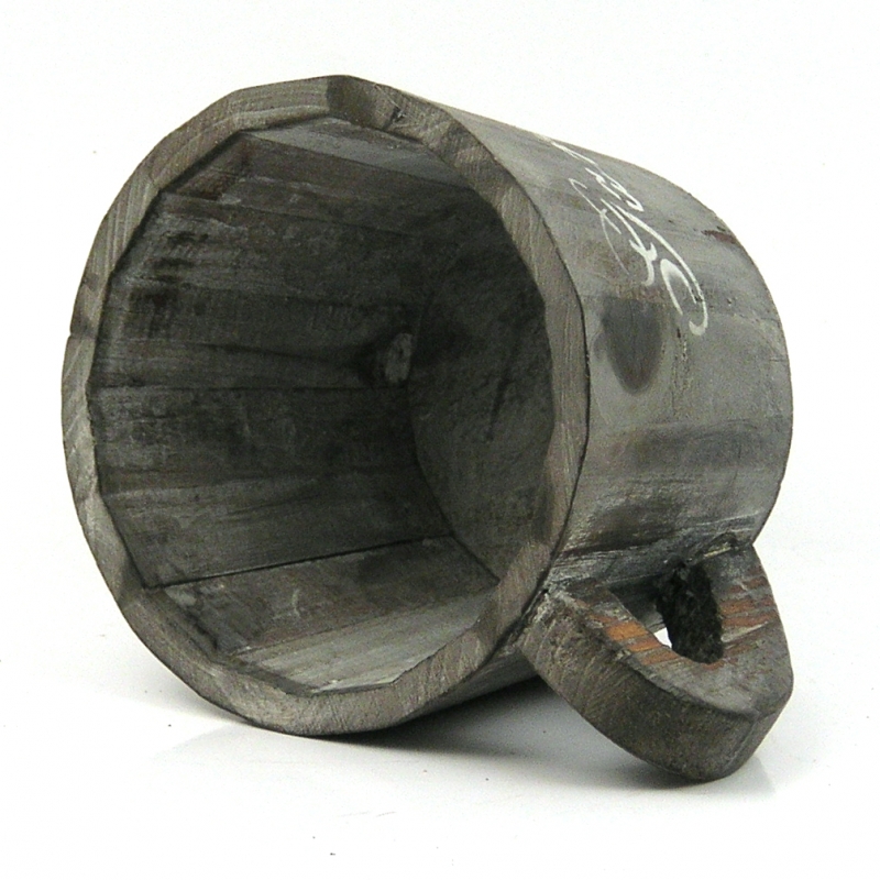 Materiál: dřevo. Rozměry: spodní průměr - 10cm, vrchní průměr 12cm, výška 9,5cm. Šířka i s ouškem - 16,5cm.
