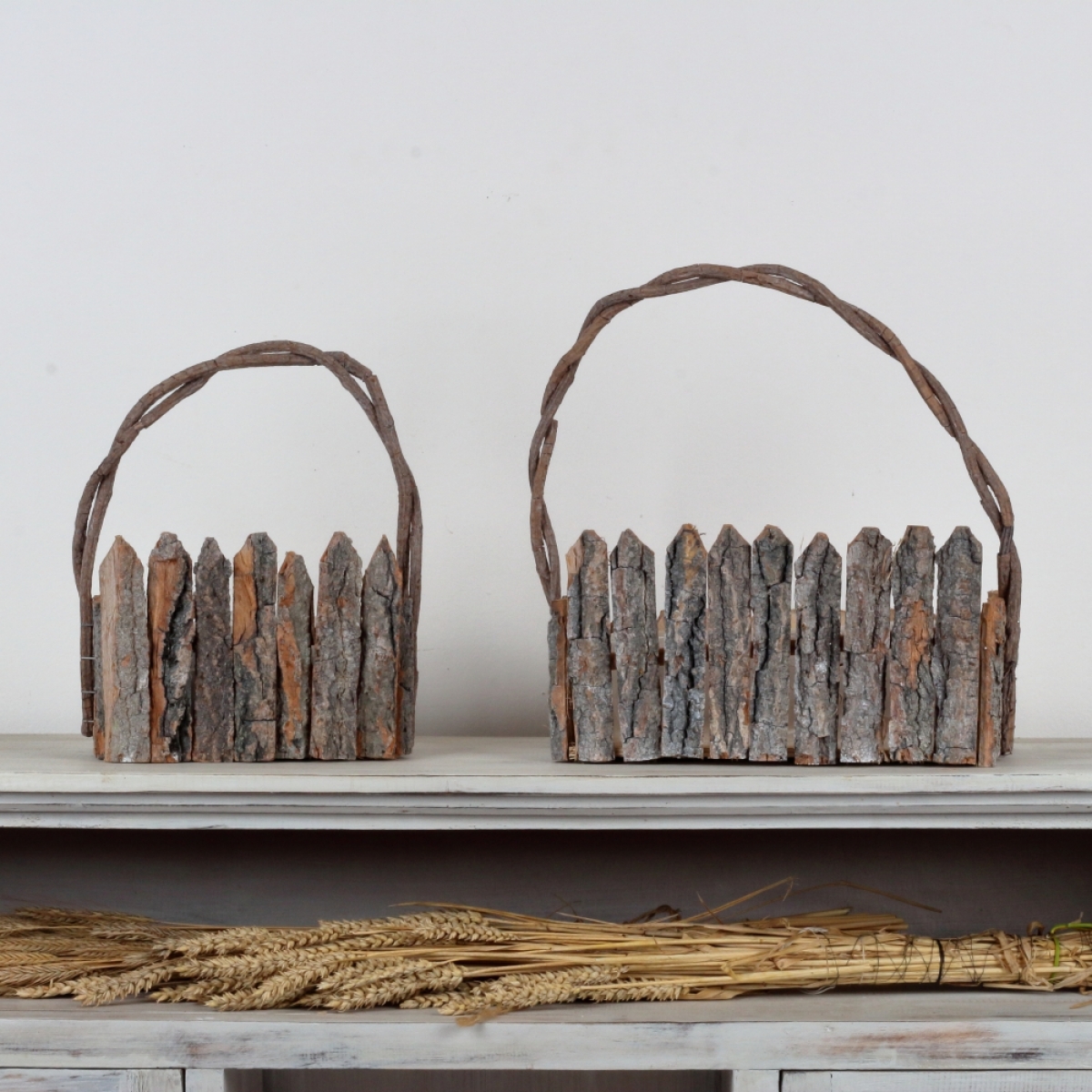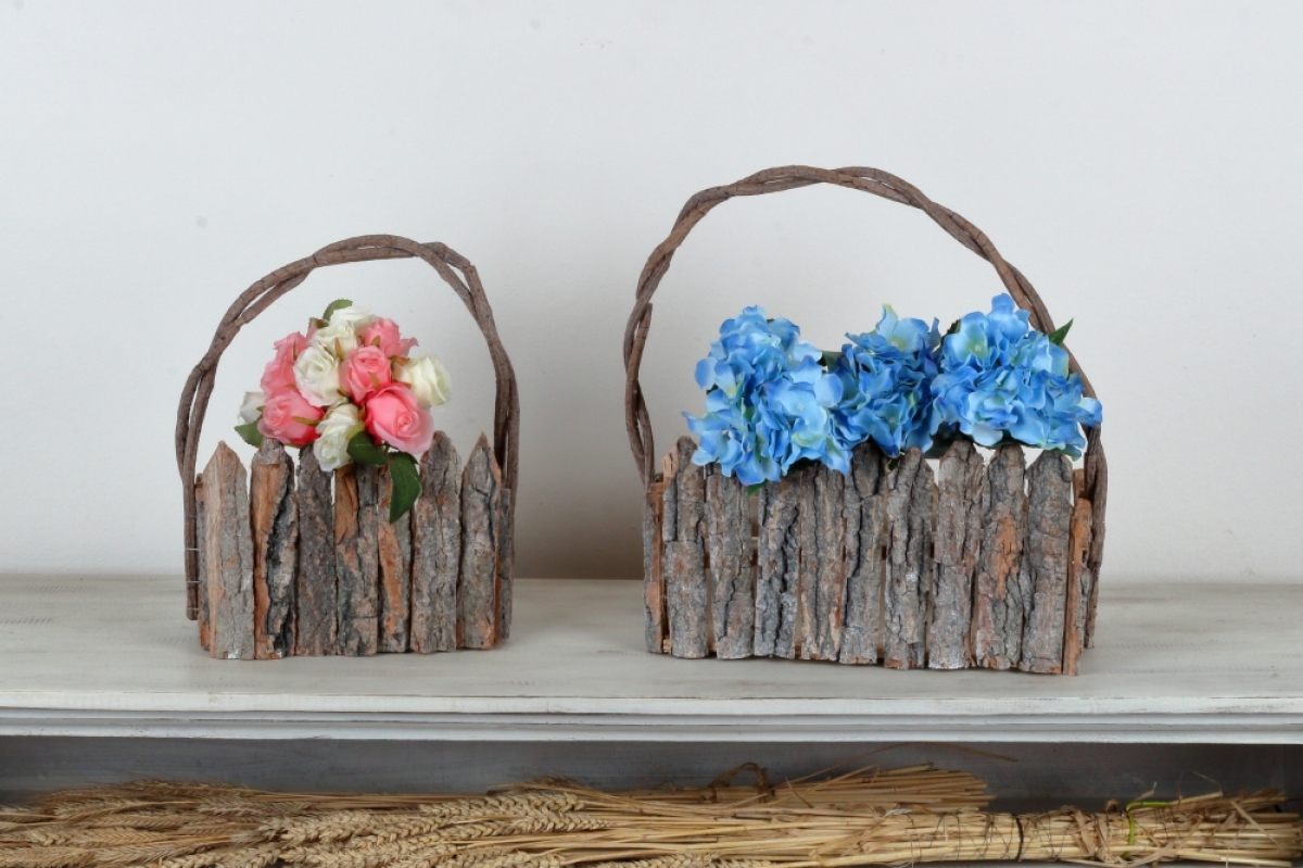 Kvetináč s dreveným plotom (sada 2ks) 32×22×9cm/22×16×9cm