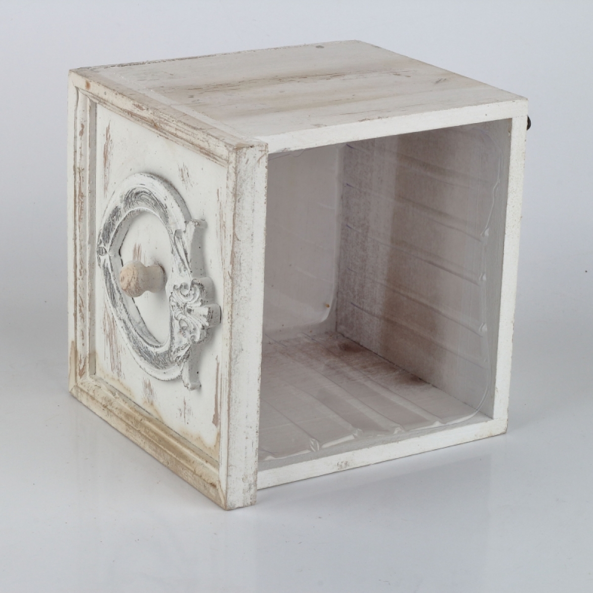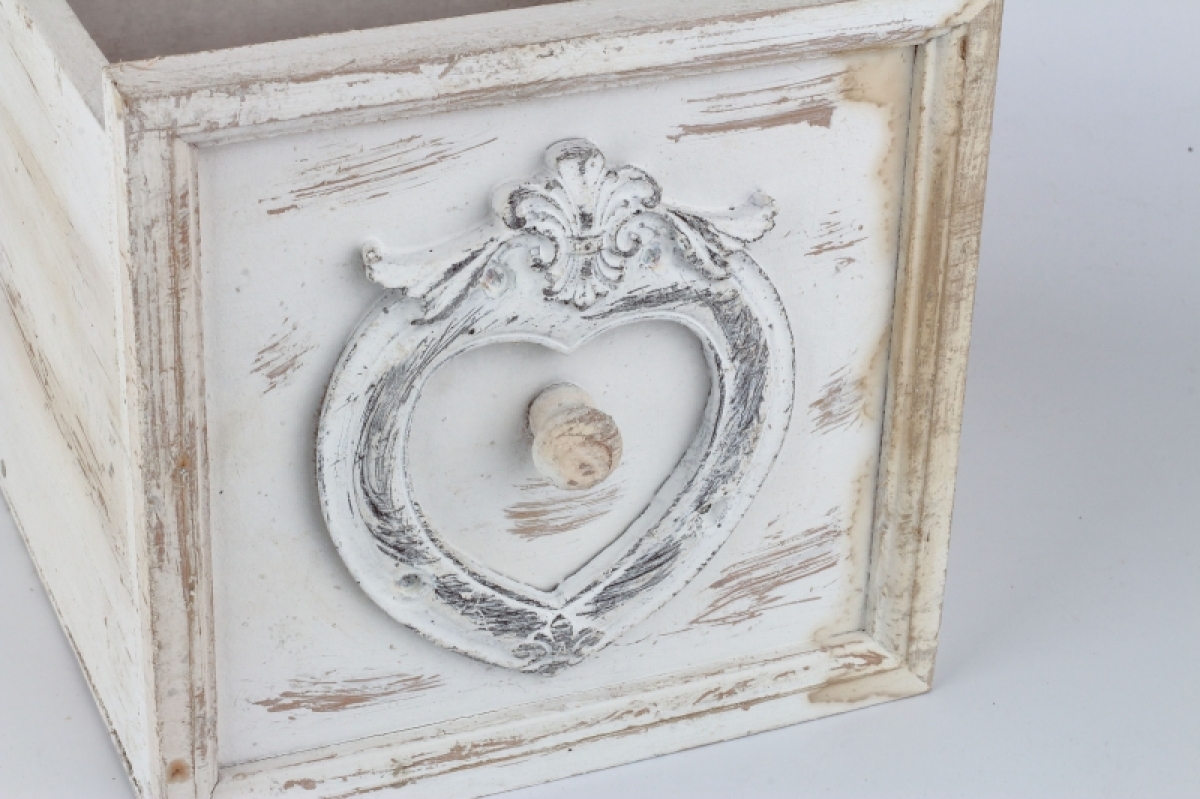 Kvetináč šuplík biely s patinou 18,5x18,5x18cm