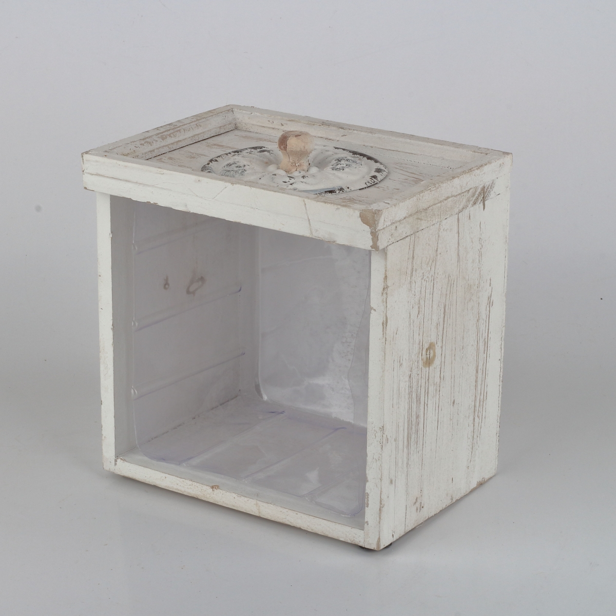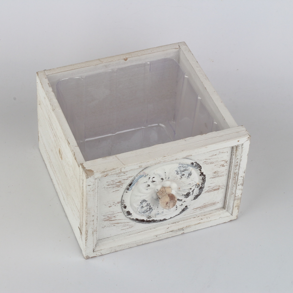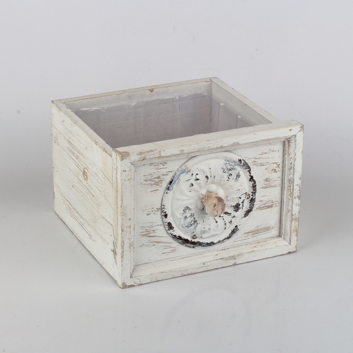 Kvetináč šuplík biely s patinou 18x18x13cm