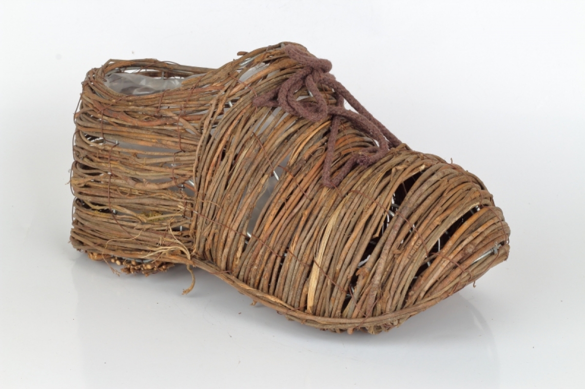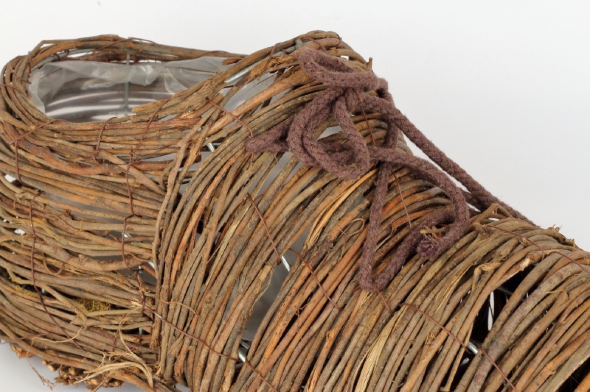 Kvetináč bota 38x17x18cm je skutočne originálny a zasluží si tak výjmočné miesto. Bota je vyrobená z prutia a súčasťou je plastová vložka, takže môžete zalievat kvety bez obáv.