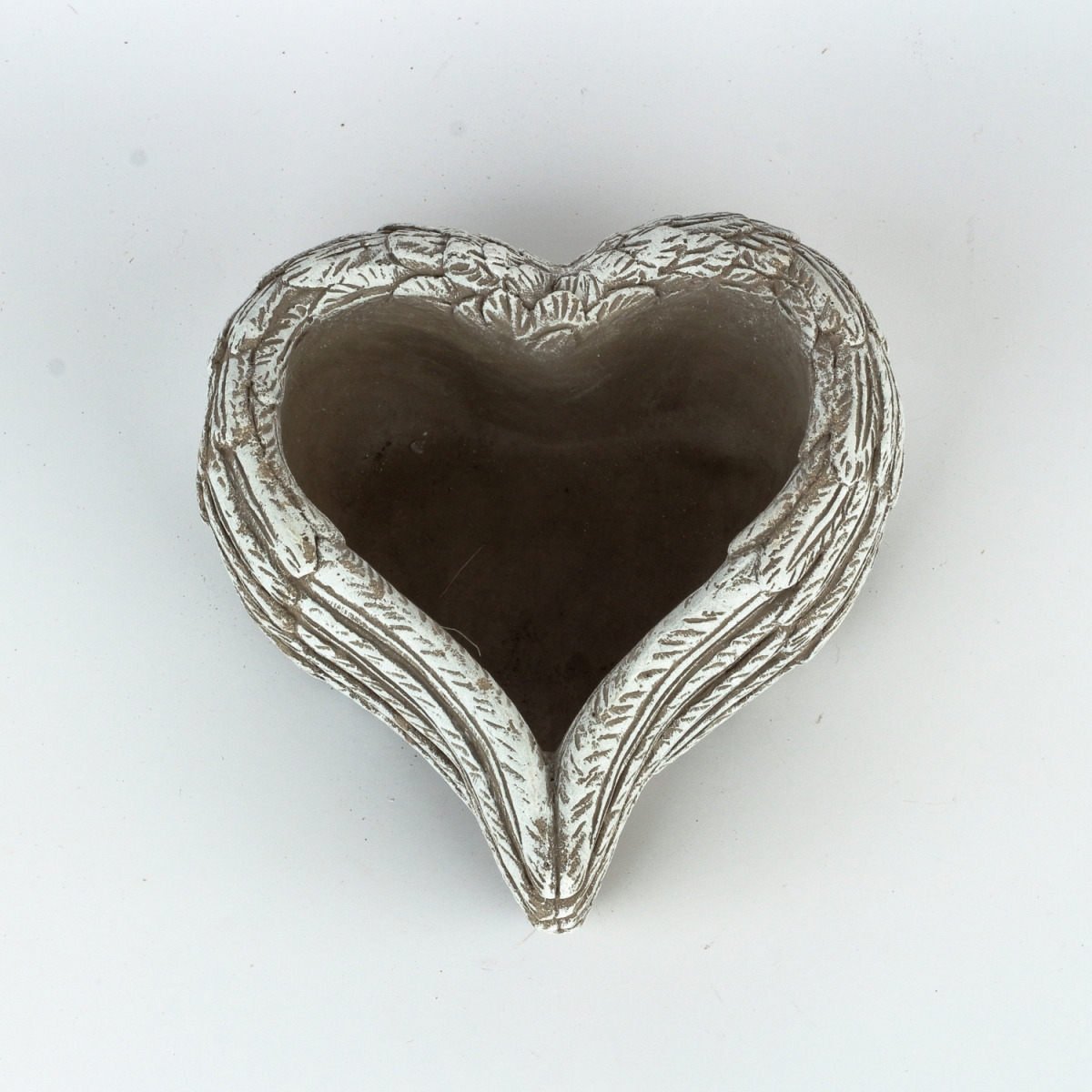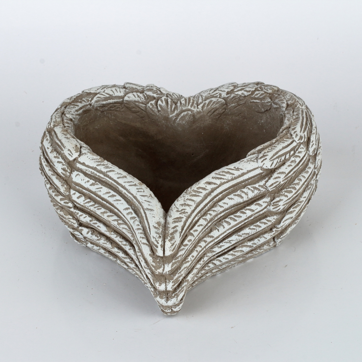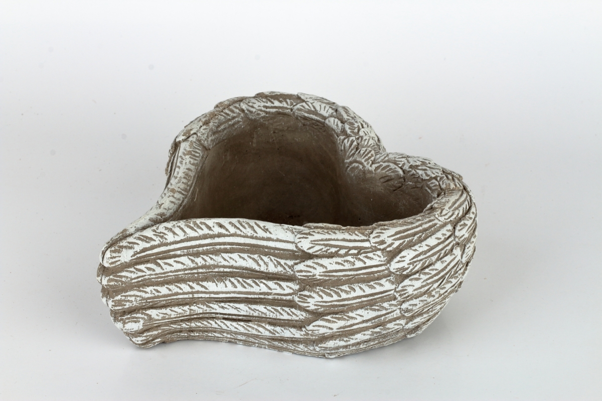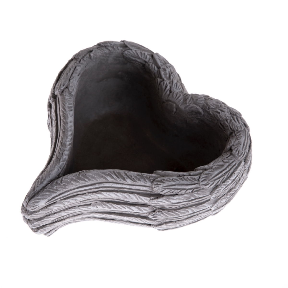 Záhradu i dom treba stále zveľaďovať, ideálne bytovými alebo záhradnými doplnkami. Ak milujete pestovanie byliniek a kvetov, potom pre vás bude skvelou voľbou tento krásny kvetináč z betónu v tvare srdca s motívom anjelských krídel.