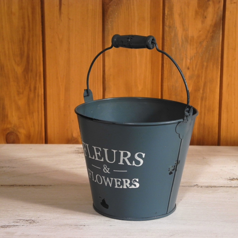 Vedro je vysoký asi 14 cm. Jeho priemer dosahuje 11 cm v spodnej a 20 cm v hornej časti. Vedro je ako správny vedierko vyrobený z plechu. Aby sa dobre prenášal, je opatrený drevenou rukoväťou pre pohodlnejšie uchopenie. Vedro je opatrený šedavým náterom zhodným s farbou džbánu a obalov, ktoré sú k prehliadnutiu v tejto kategórii. Na záhradku, na kvety, na niečo úplne iné sa vám bude tento vedro iste dobre hodiť.