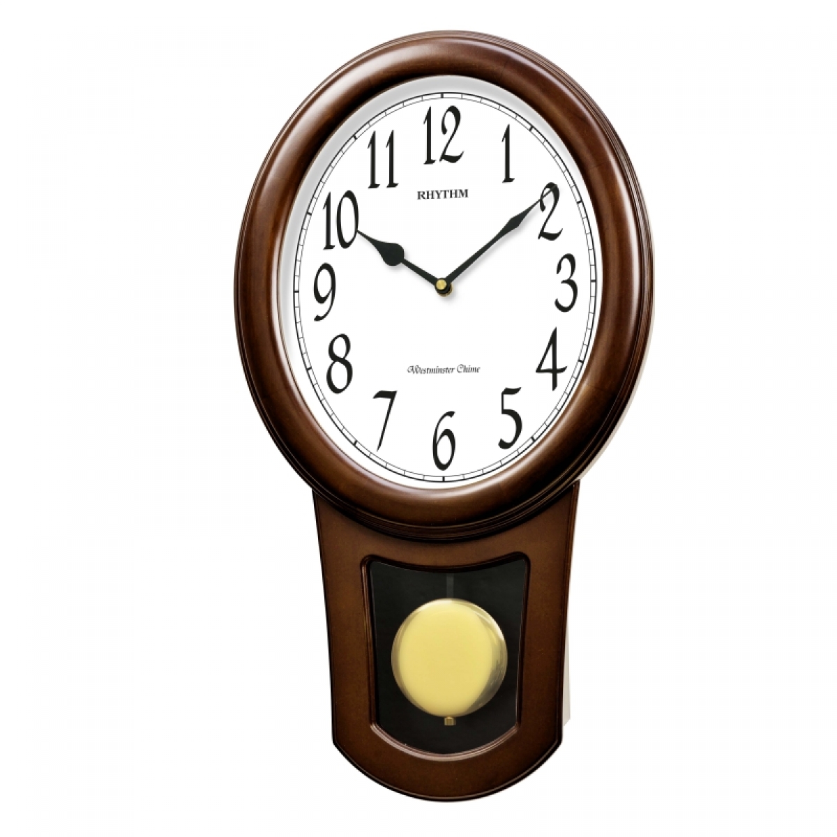Kyvadlové hodiny v oválnom tvare vyrobené z dreva