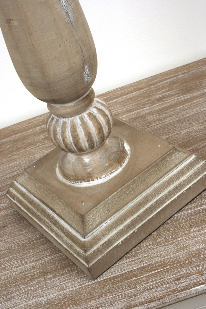 Lampa sústruženie antický štýl 87cm nádherne vynikne pri pohovke alebo kreslá v obývacej izbe. Lampu môžete umiestniť aj nízky stolík. Sústružený hnedý podstavec s patinou je doplnený o krémovej tienidlo. Moc pekne spolu ladia. Jemné neutrálne tóny sú decentné a elegantné.