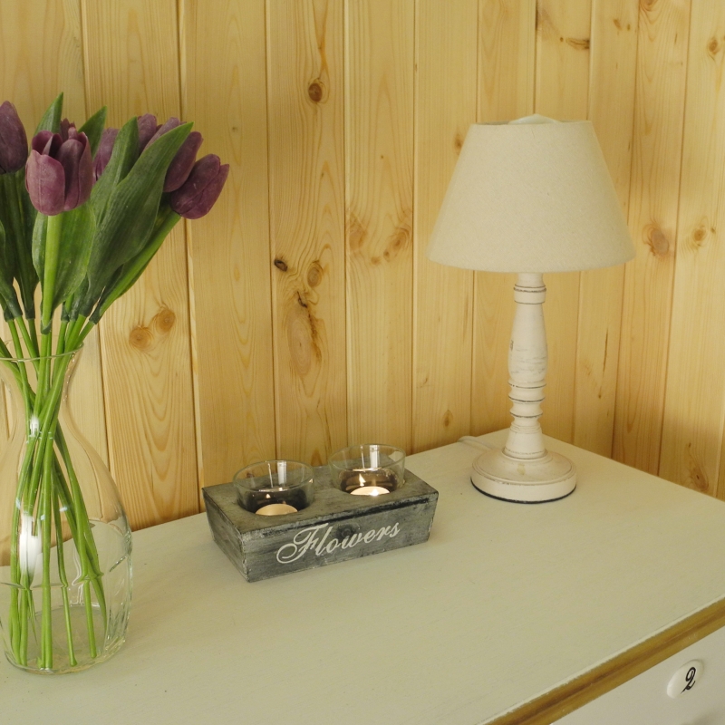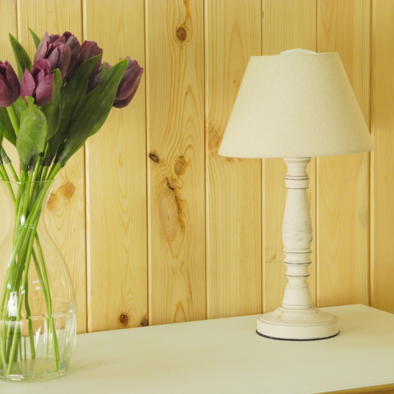 Lampička svou barvou připomíná nevěstu, její cylindr i dřevěná soustružená noha mají bílý odstín. Patří k menším lampičkám, je vysoká pouze 37 cm. Díky tomu se hodí i do menších prostor. Vrchní průměr cylindru je 11 cm, cylindr je vysoký 13 cm.