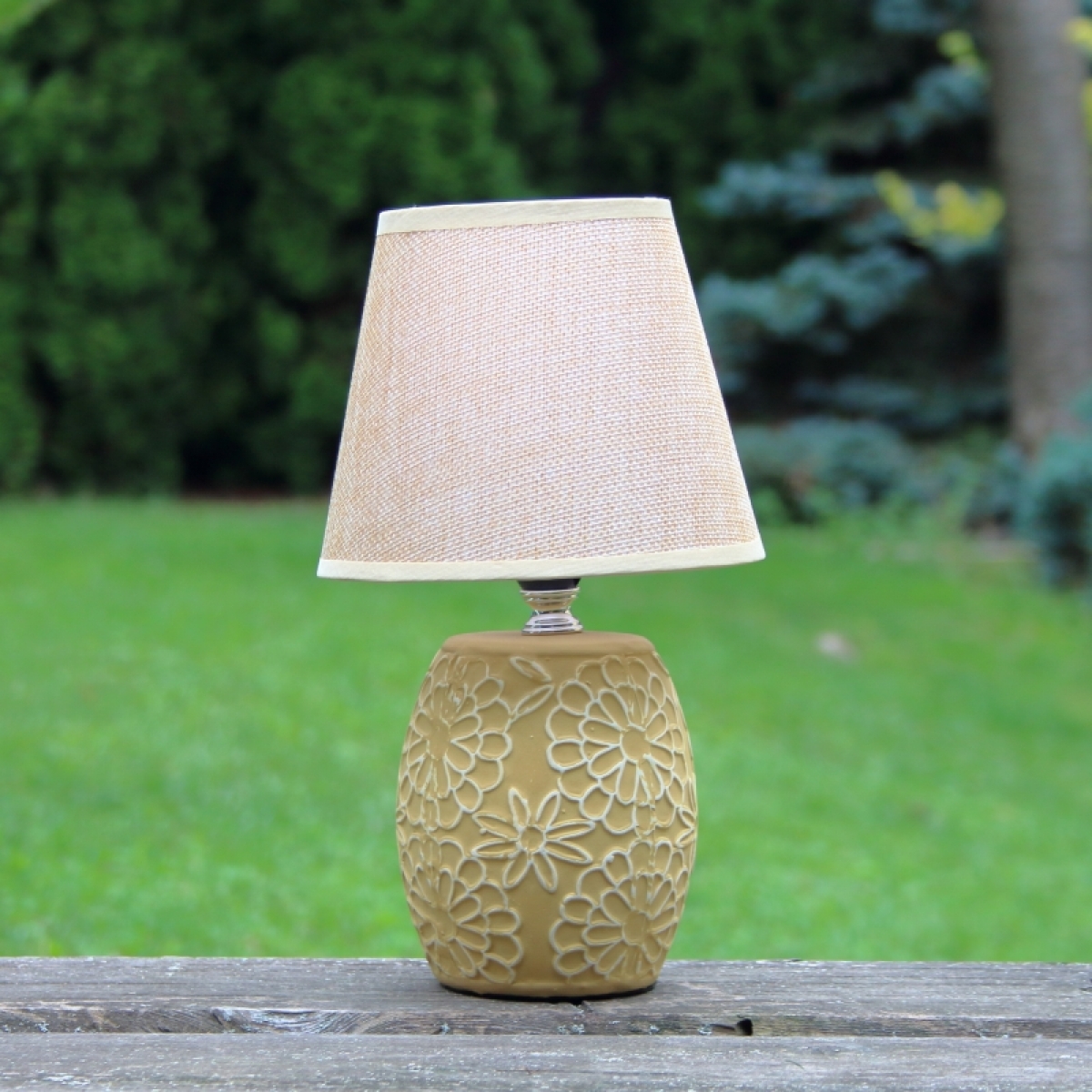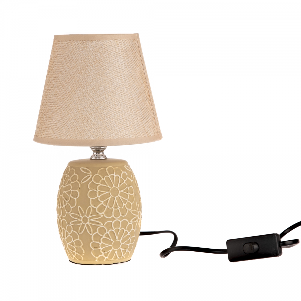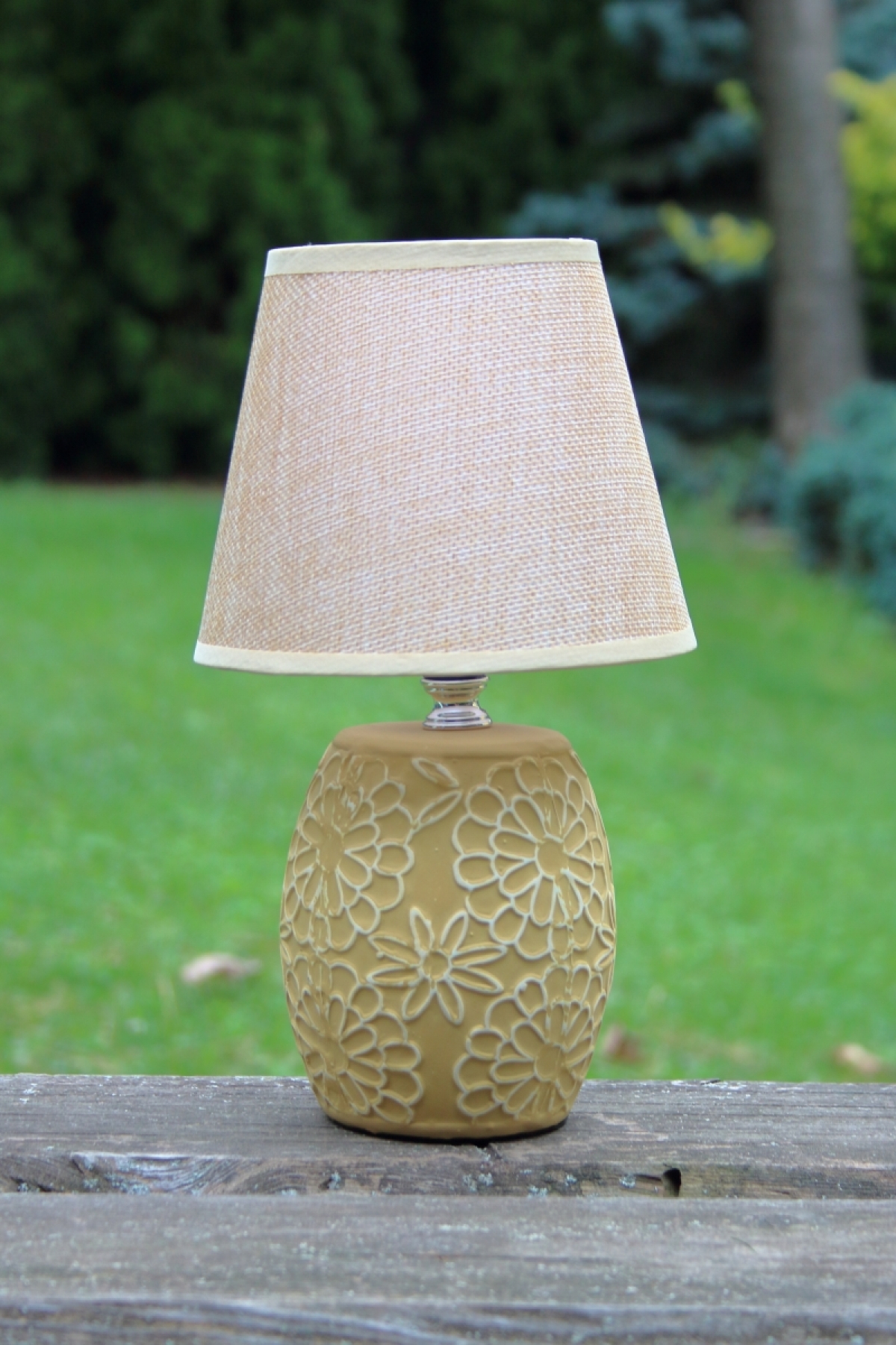 Krémovo žltá lampička do zásuvky nebude len tienidlom v pracovni alebo spálni, bude aj krásnou ozdobou. Keramický podstavec s kvetinami bude dominantou miestnosti a vám vyčarí úsmev na tvári zakaždým, keď sa na lampičku pozriete.