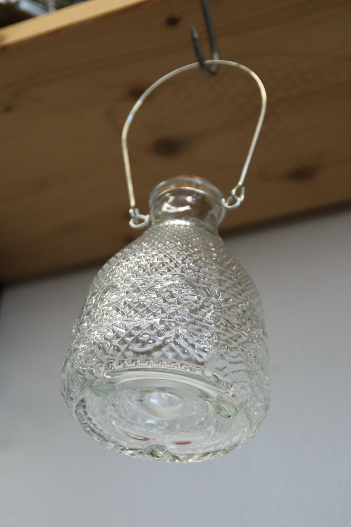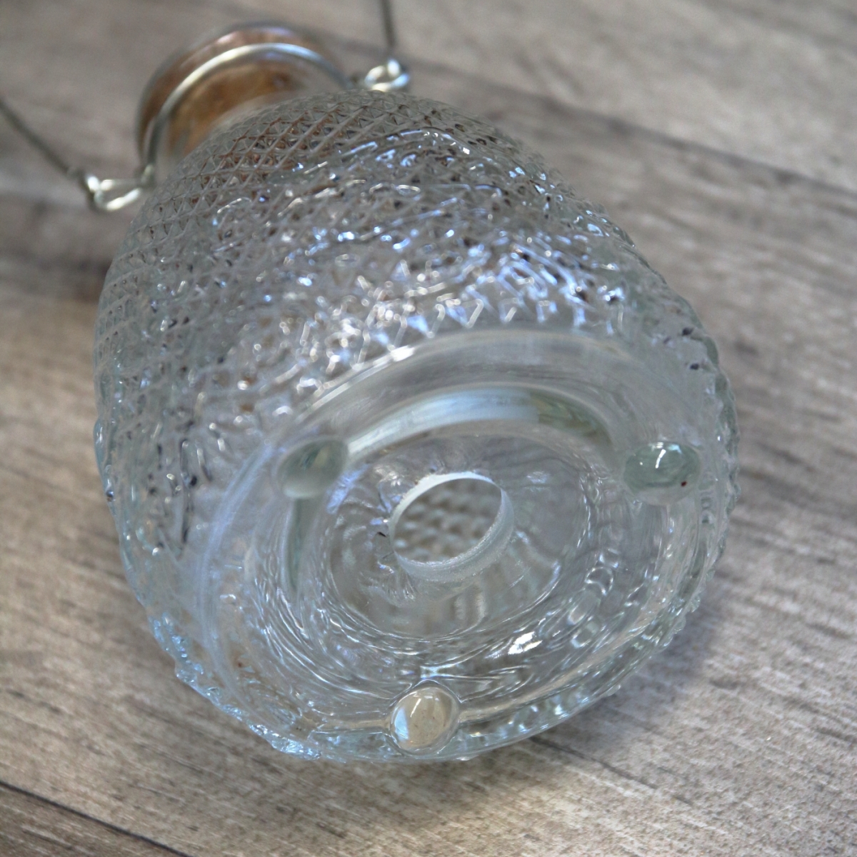 Materiál: číre sklo s dekorom, korok, drôt