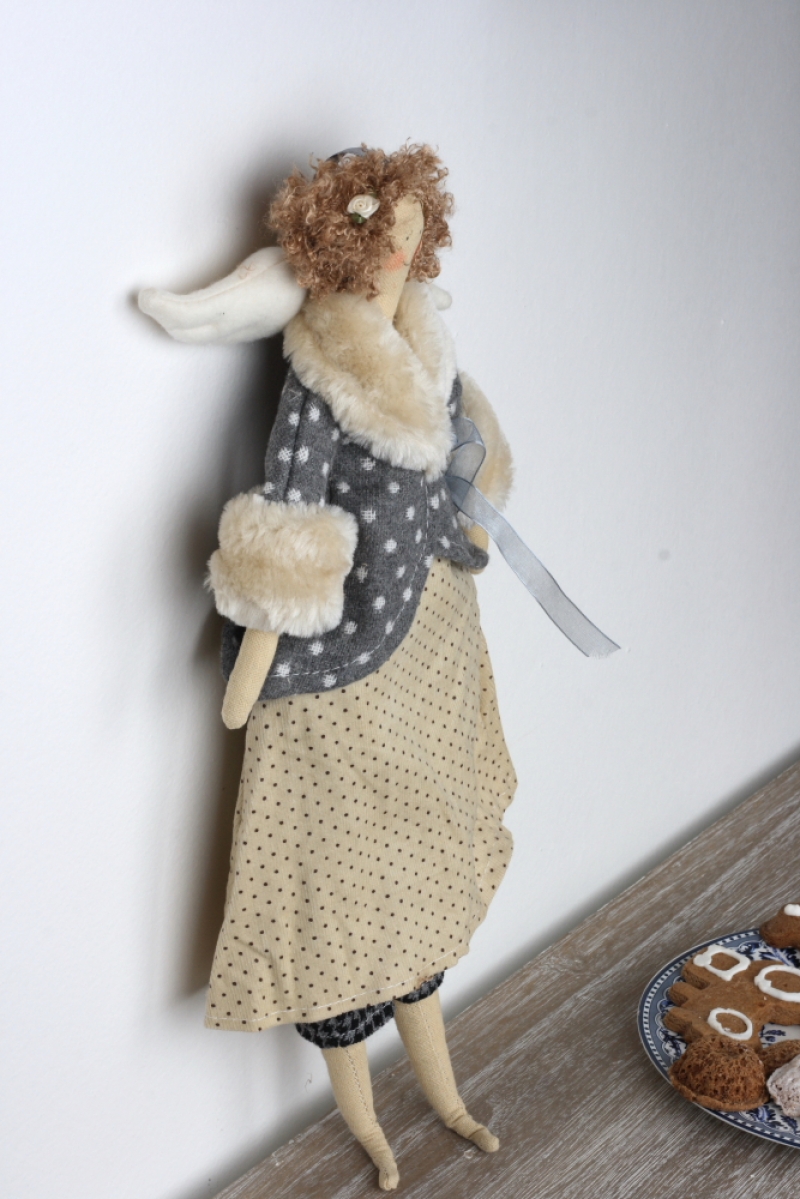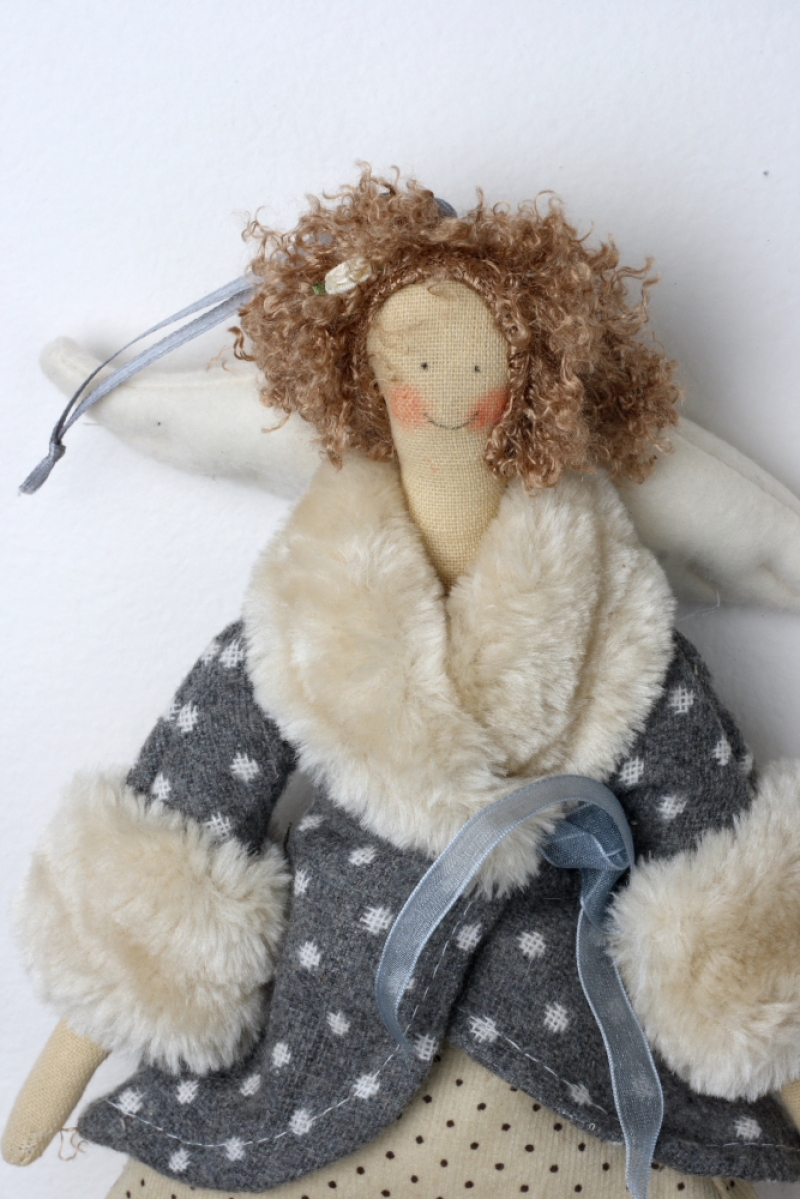 Látková andelko v kabátiku 43cm
