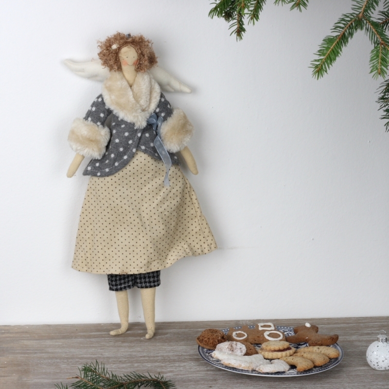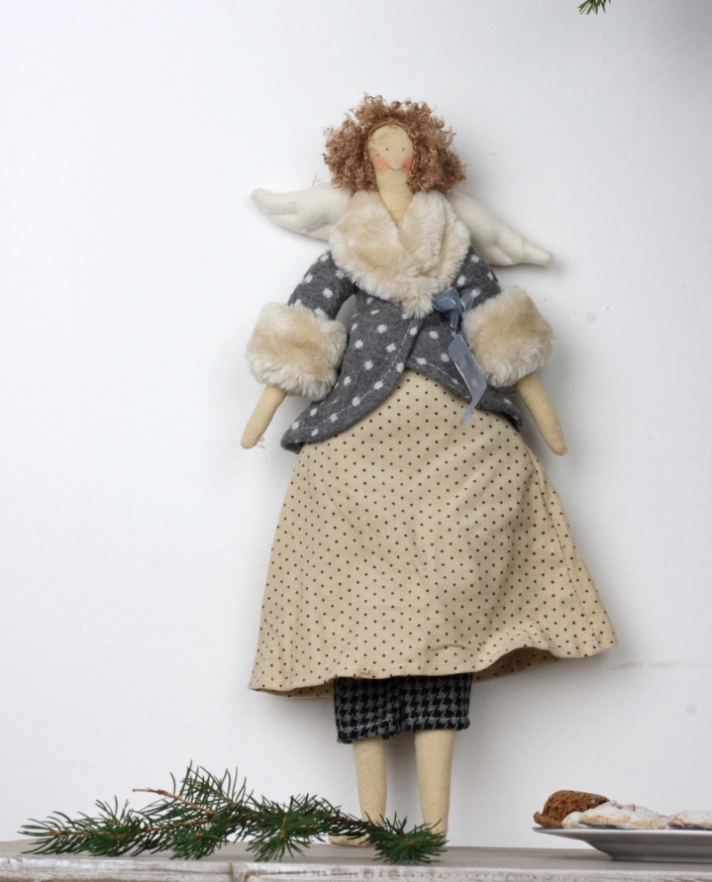 Látková andelko v kabátiku 43cm nájde svoj domov u romantických duší, ktoré si potrpia na nežné drobnosti. Ste to práve vy? Alebo viete o niekom, komu by urobila Andelko radosť?