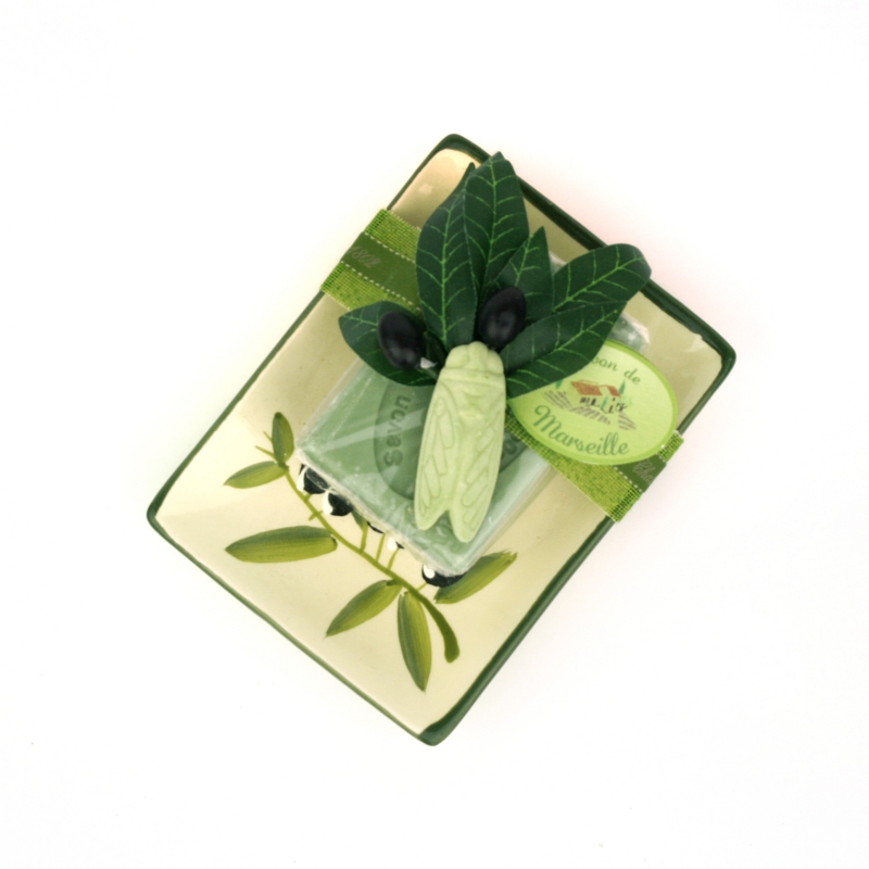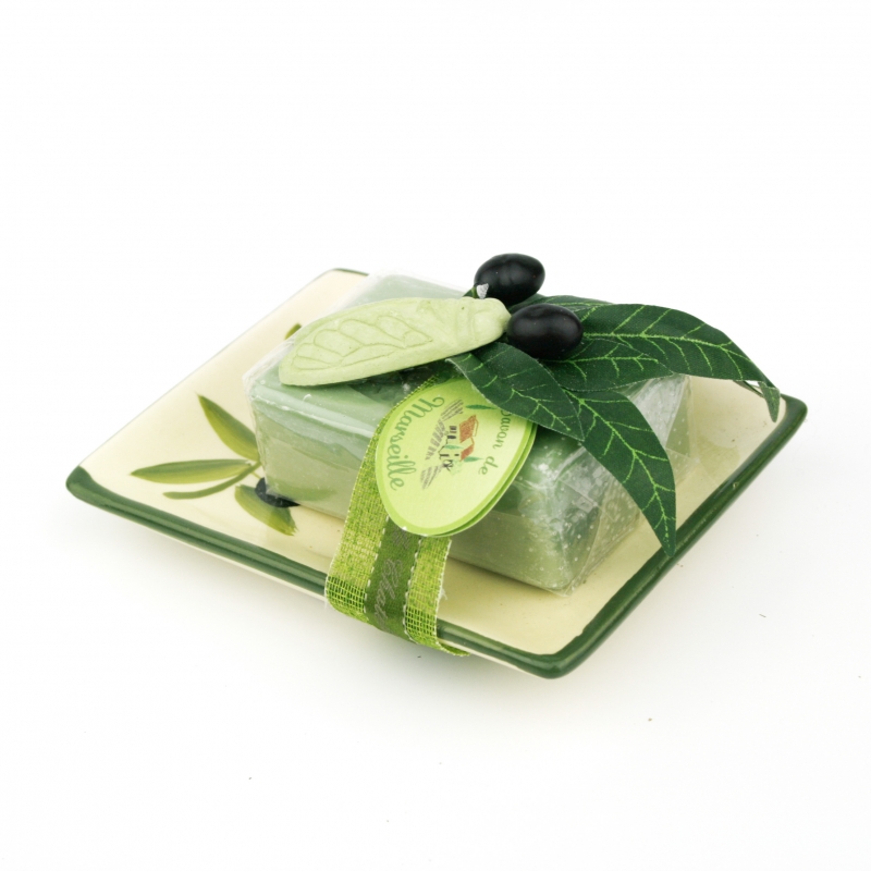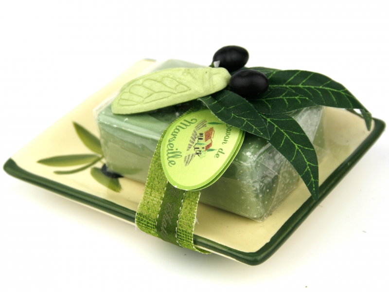 Le Chatelard keramická mydelnička a mydlo s vôňou olív.