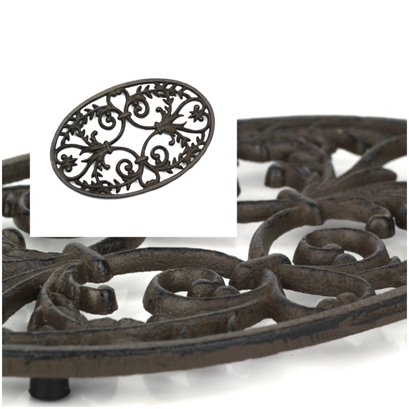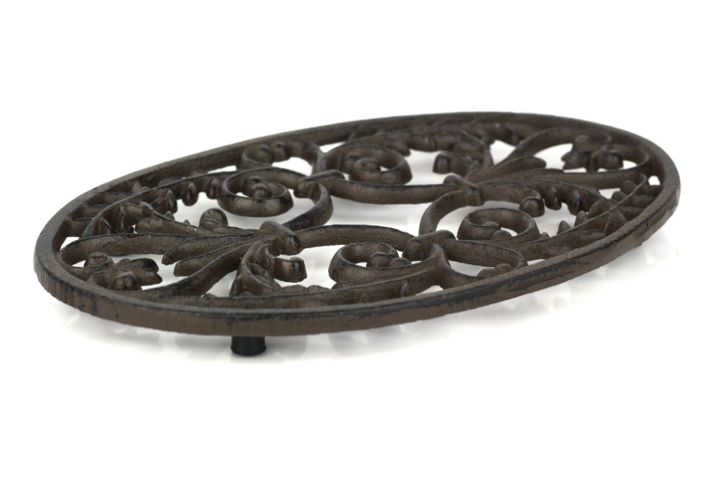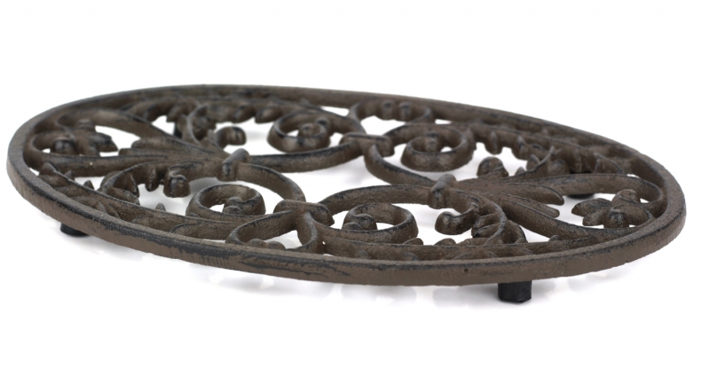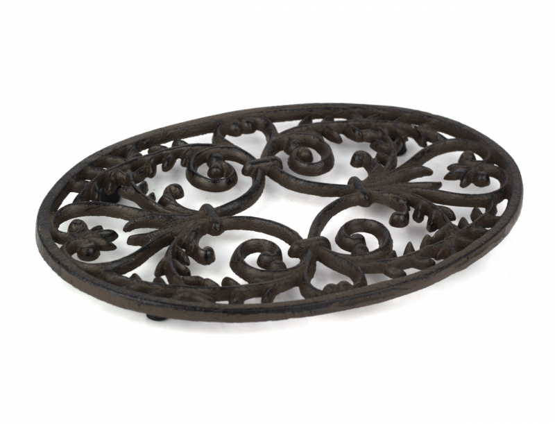 Táto podložka pod hrniec má oválny tvar a je tvorená krásnymi liatinovými ornamenty. Hodí sa aj na veľké hrnce a misy.