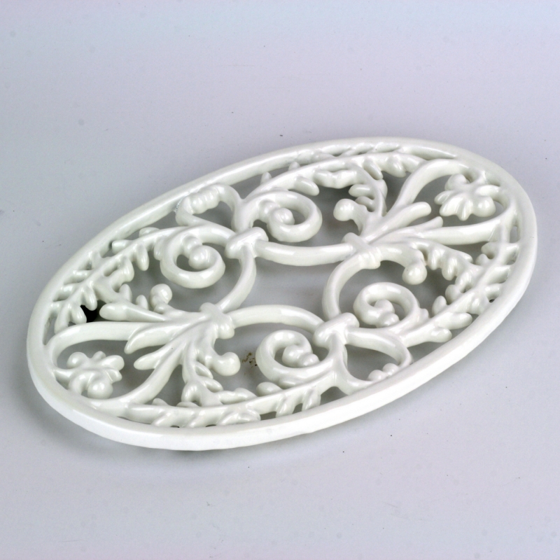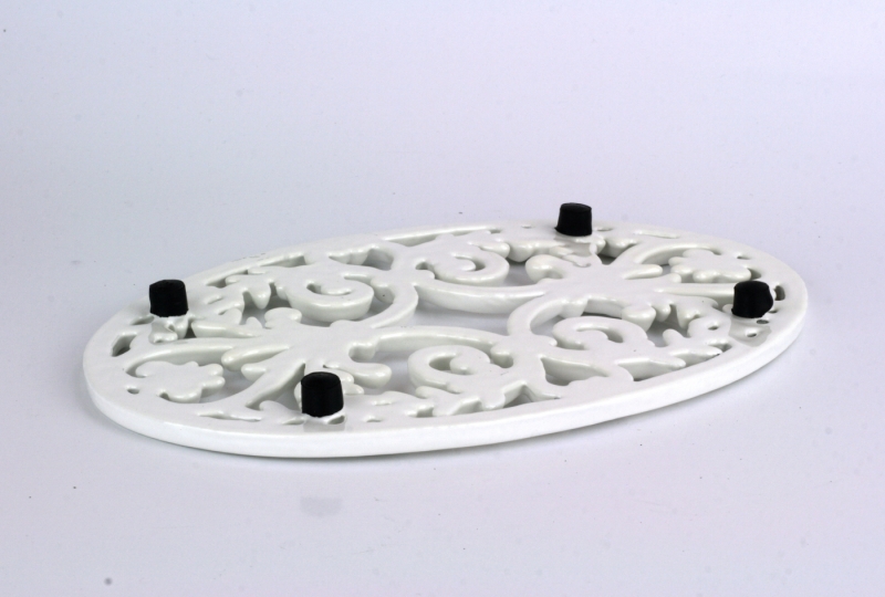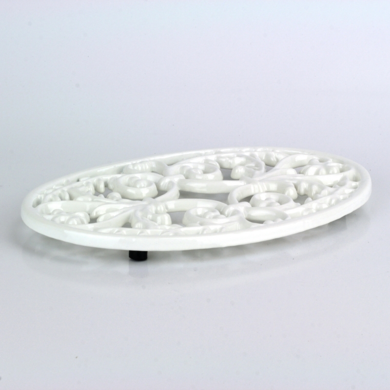 Masívna liatinová podložka s ornamentami sa stala natoľko obľúbenou, že sme ju museli nechať urobiť nový kabát. Podložku tak okrem klasickej tmavej farby liatiny môžete zakúpiť aj v tejto prekrásnej svetlej variante z bieleho smaltu.