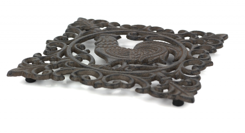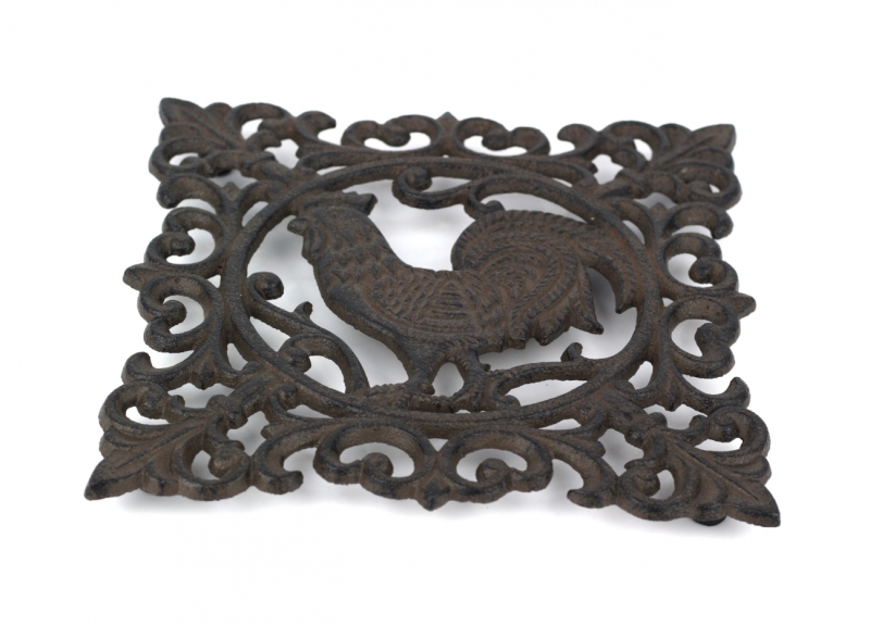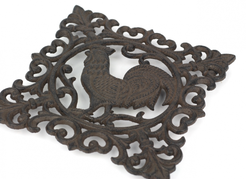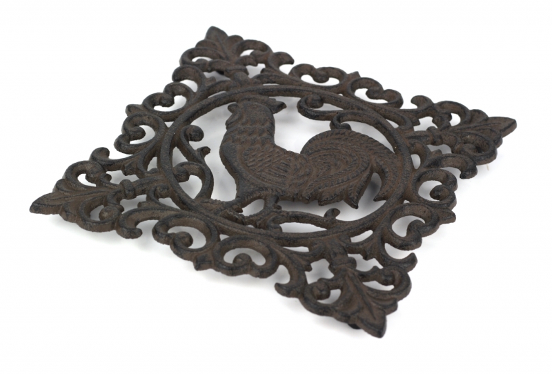 Liatinová podložka pod hrniec kohút 17x17cm ochráni Váš stôl alebo kuchynskú pracovnú dosku pred horúcimi hrnci. Podložka pod hrniec bude navyše ozdobou prestretého stola i Vašej kuchyne.