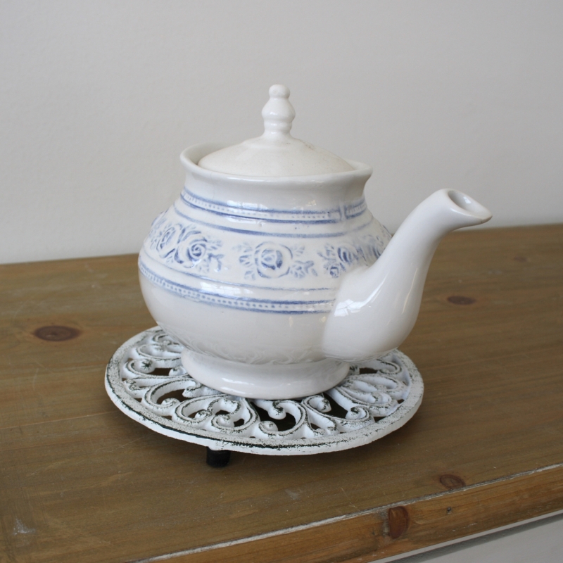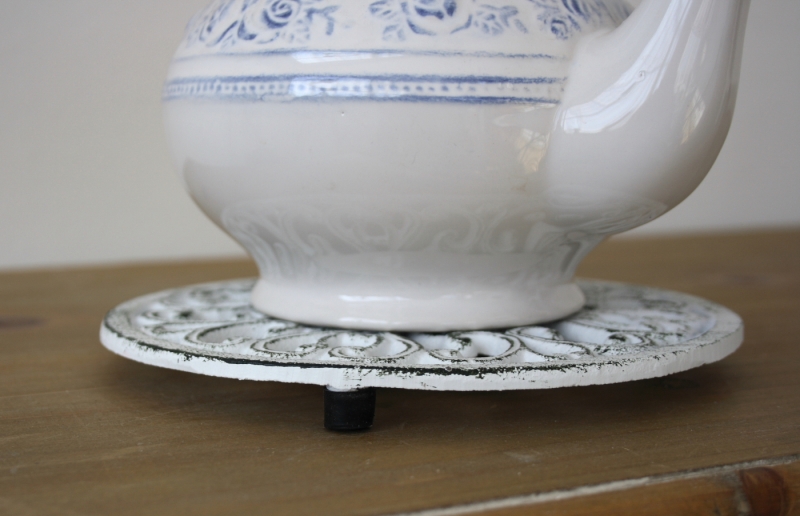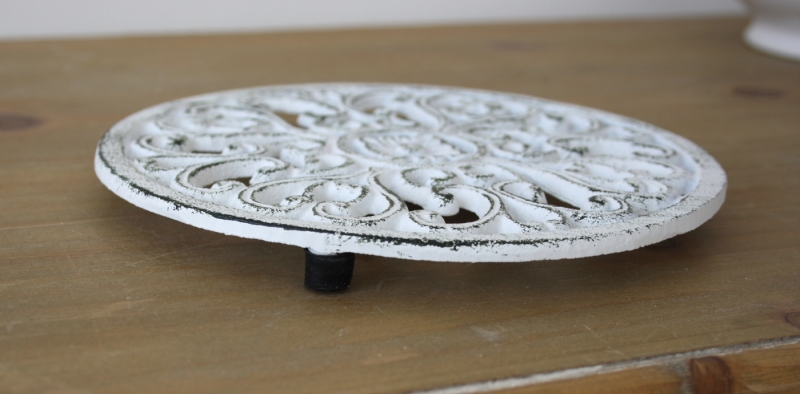 Liatinová podložka pod hrniec okrúhla veľká biela 18cm ochráni Váš stôl alebo kuchynskú pracovnú dosku pred horúcimi hrnci. Podložka pod hrniec bude navyše ozdobou prestretého stola i Vašej kuchyne.