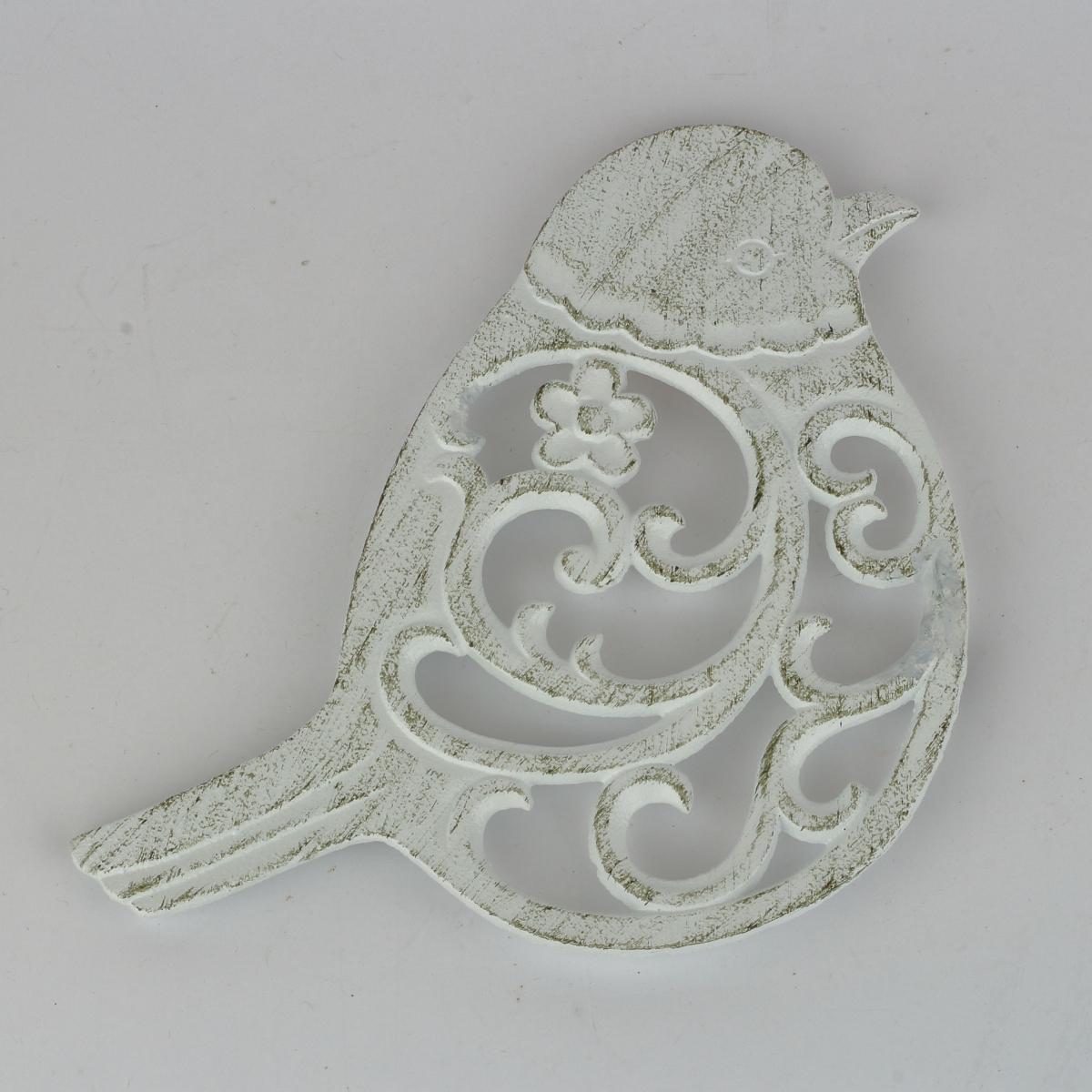 Liatinová podložka pod hrniec vtáčik biela 19x19cm