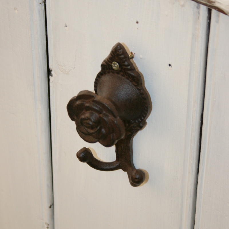 Liatinový dvojháčik kytička 13x50cm na zavesenie všetkého, čo potrebujete mať ľahko po ruke. Do kúpeľne, kuchyne aj predsiene.