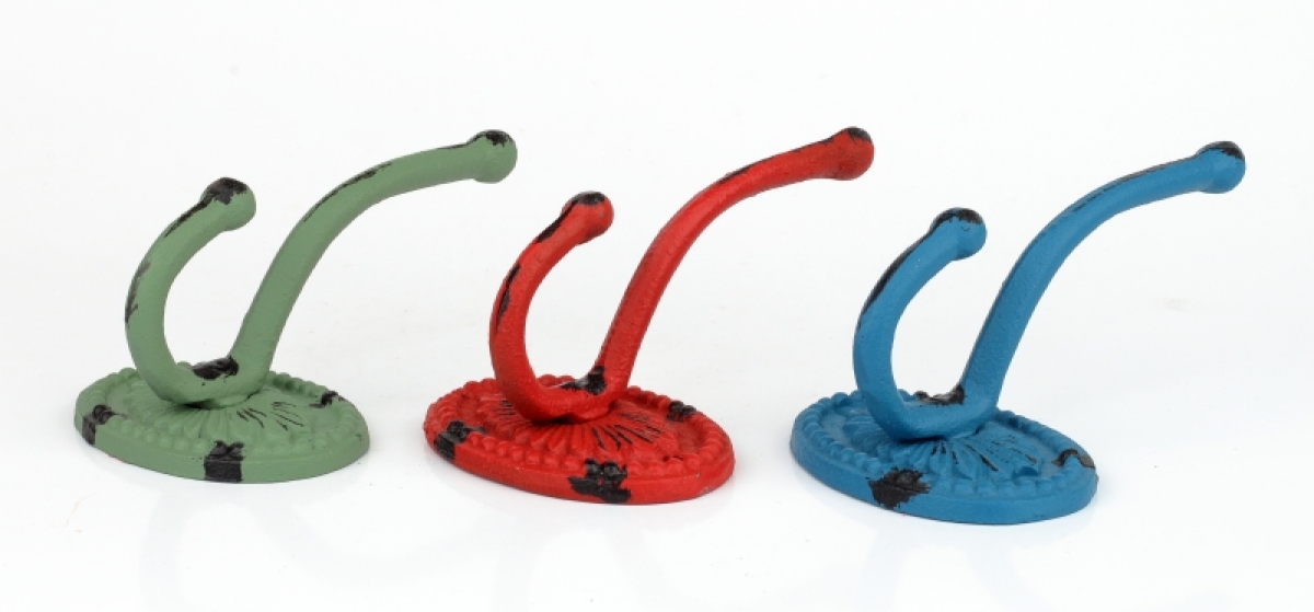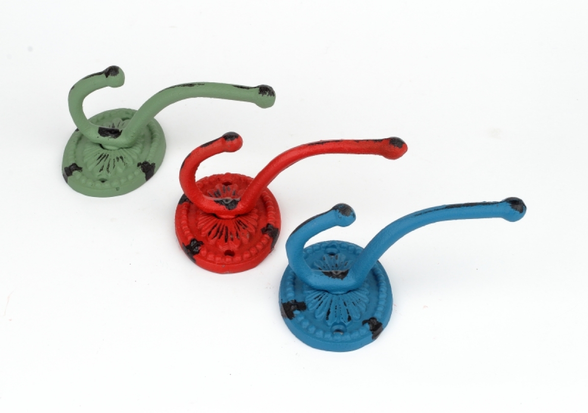 Liatinové háčiky sú dostupné v troch farbách. Kolekcia retro liatiny ponúka v rovnakom dizajne niekoľko typov háčikov, vešiakov aj šikovné zarážky na dvere. Vstup do domu tak môžete vyladiť do posledného detailu!