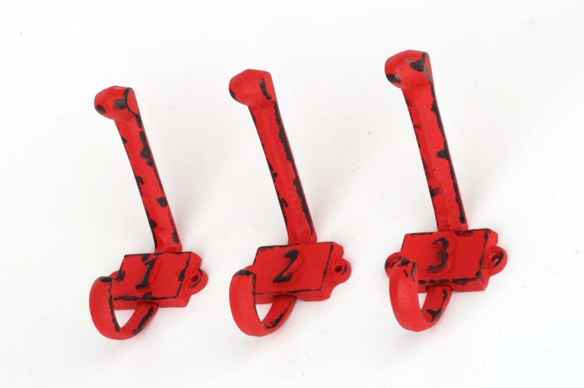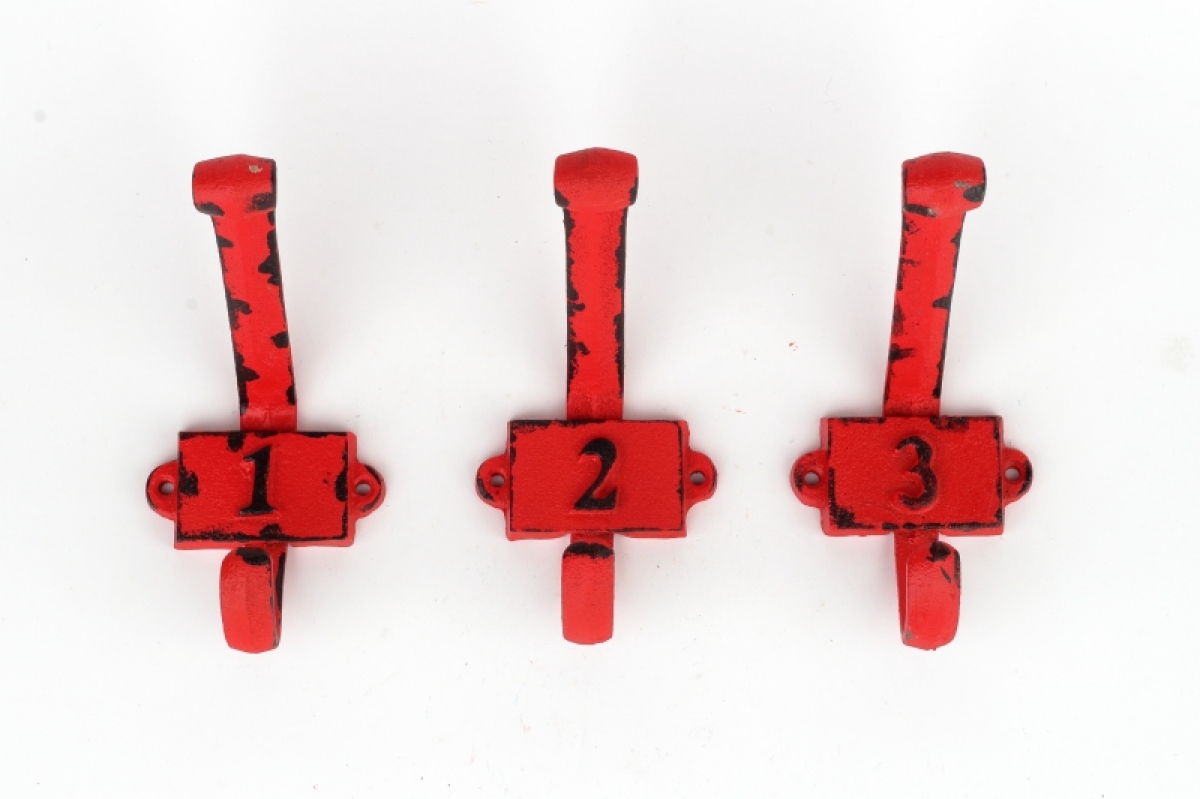 Liatinový retro vešiak na stenu s číslom 1 červený