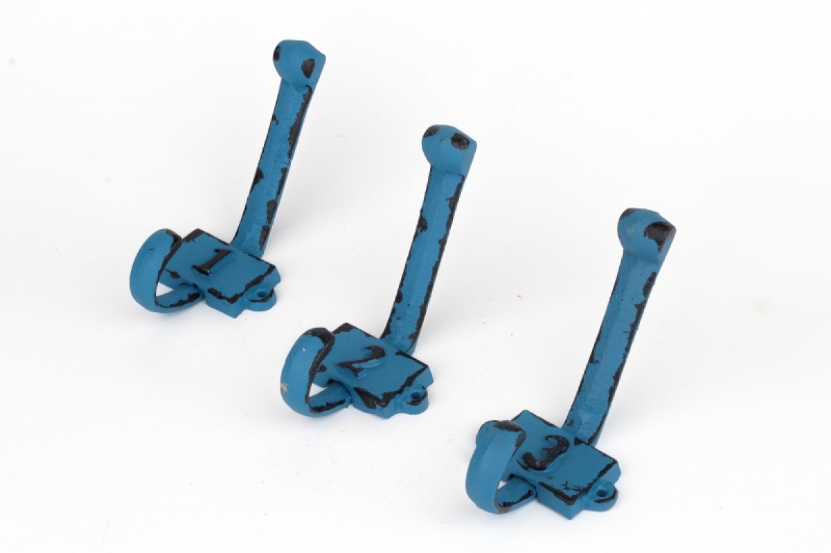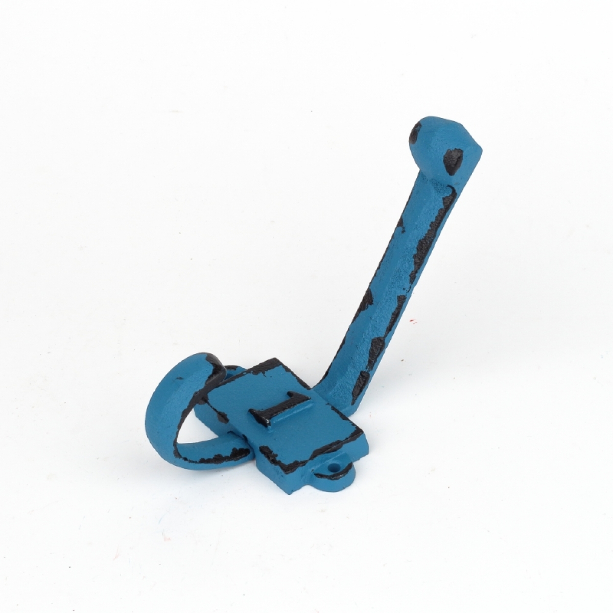 Liatinový retro vešiak na stenu s číslom 1 modrý
