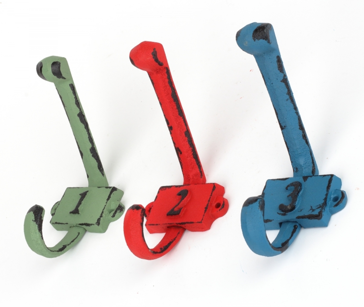 Vešiak je v ponuke v troch farbách (červená, zelená, modrá) s číslami 1, 2 a 3.