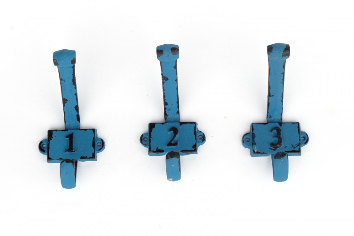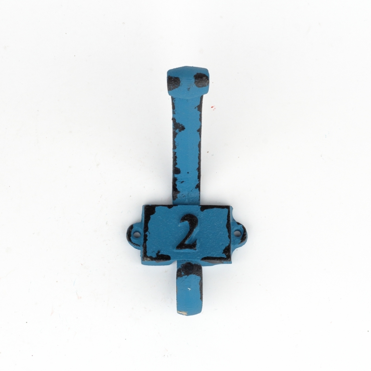 Liatinový retro vešiak na stenu s číslom 2 modrý